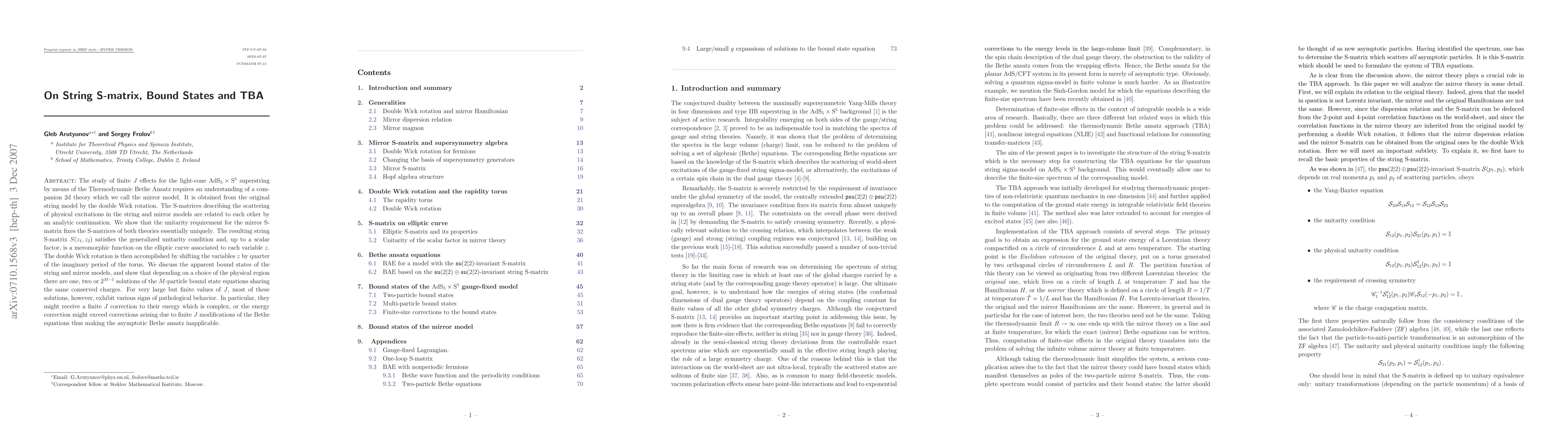 The study of finite J effects for the light-cone AdS superstring by means of the Thermodynamic Bethe Ansatz requires an understanding of a companion 2d theory which we call the mirror model. It is obtained from the original string model by the double Wick rotation. The S-matrices describing the scattering of physical excitations in the string and mirror models are related to each other by an analytic continuation. We show that the unitarity requirement for the mirror S-matrix fixes the S-matrices of both theories essentially uniquely. The resulting string S-matrix S(z_1,z_2) satisfies the generalized unitarity condition and, up to a scalar factor, is a meromorphic function on the elliptic curve associated to each variable z. The double Wick rotation is then accomplished by shifting the variables z by quarter of the imaginary period of the torus. We discuss the apparent bound states of the string and mirror models, and show that depending on a choice of the physical region there are one, two or 2^{M-1} solutions of the M-particle bound state equations sharing the same conserved charges. For very large but finite values of J, most of these solutions, however, exhibit various signs of pathological behavior. In particular, they might receive a finite J correction to their energy which is complex, or the energy correction might exceed corrections arising due to finite J modifications of the Bethe equations thus making the asymptotic Bethe ansatz inapplicable.