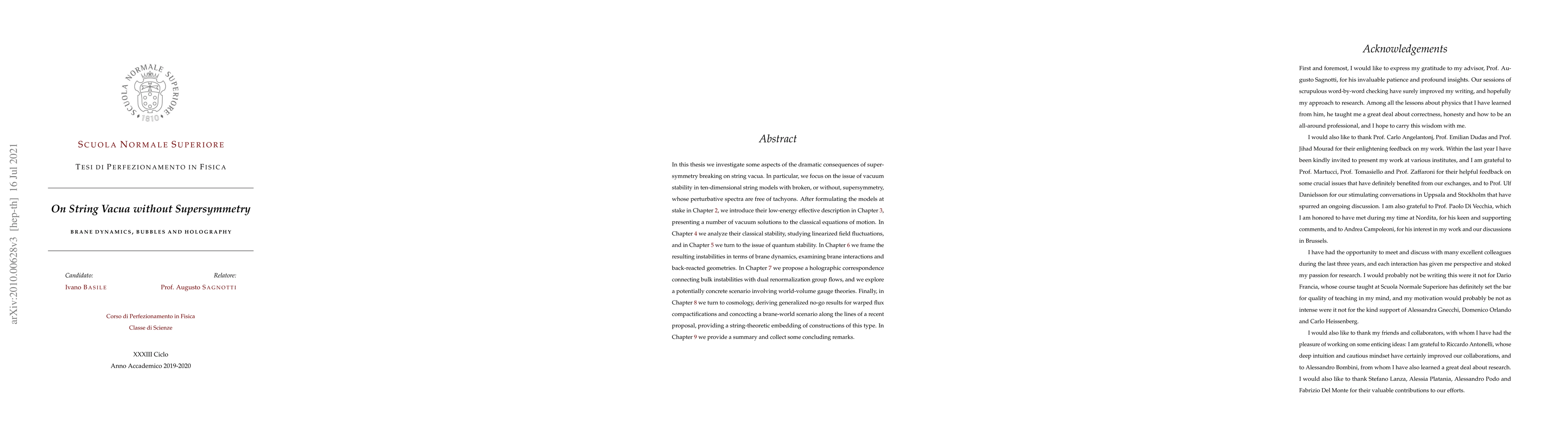 In this thesis we investigate some aspects of the dramatic consequences of supersymmetry breaking on string vacua. In particular, we focus on the issue of vacuum stability in ten-dimensional string models with broken, or without, supersymmetry, whose perturbative spectra are free of tachyons. After formulating the models at stake in Chapter 2, we introduce their low-energy effective description in Chapter 3, presenting a number of vacuum solutions to the classical equations of motion. In Chapter 4 we analyze their classical stability, studying linearized field fluctuations, and in Chapter 5 we turn to the issue of quantum stability. In Chapter 6 we frame the resulting instabilities in terms of brane dynamics, examining brane interactions and back-reacted geometries. In Chapter 7 we propose a holographic correspondence connecting bulk instabilities with dual renormalization group flows, and we explore a potentially concrete scenario involving world-volume gauge theories. Finally, in Chapter 8 we turn to cosmology, deriving generalized no-go results for warped flux compactifications and concocting a brane-world scenario along the lines of a recent proposal, providing a string-theoretic embedding of constructions of this type. In Chapter 9 we provide a summary and collect some concluding remarks.