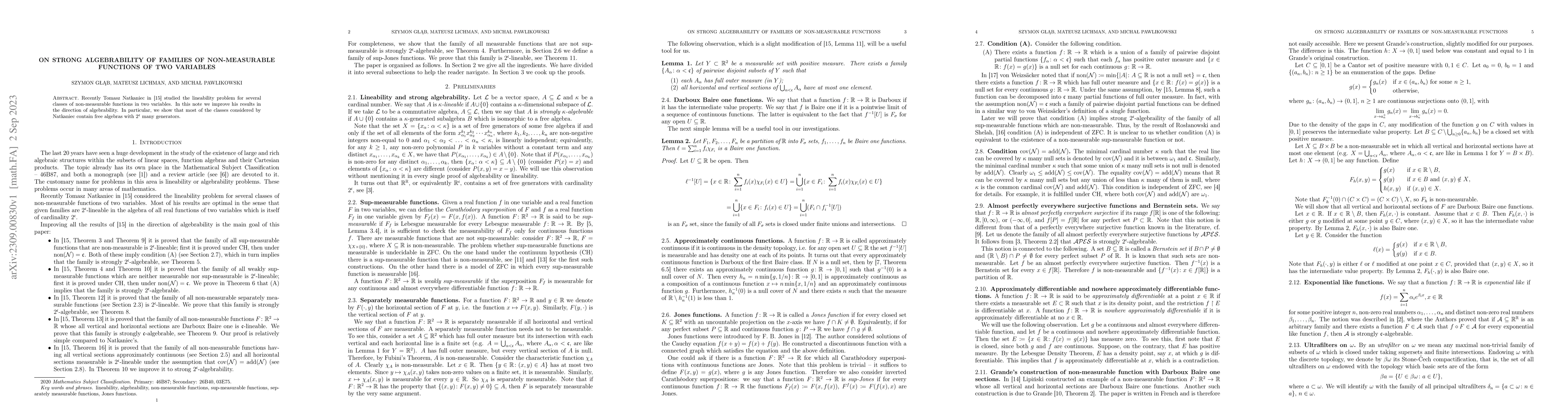 Recently Tomasz Natkaniec in [On lineability of families of non-measurable functions of two variable. Rev. R. Acad. Cienc. Exactas F\'is. Nat. Ser. A Mat. RACSAM, 115(1):Paper No. 33, 10, 2021] studied the lineability problem for several classes of non-measurable functions in two variables. In this note we improve his results in the direction of algebrability. In particular, we show that most of the classes considered by Natkaniec contain free algebras with $2^{\mathfrak{c}}$ many generators.