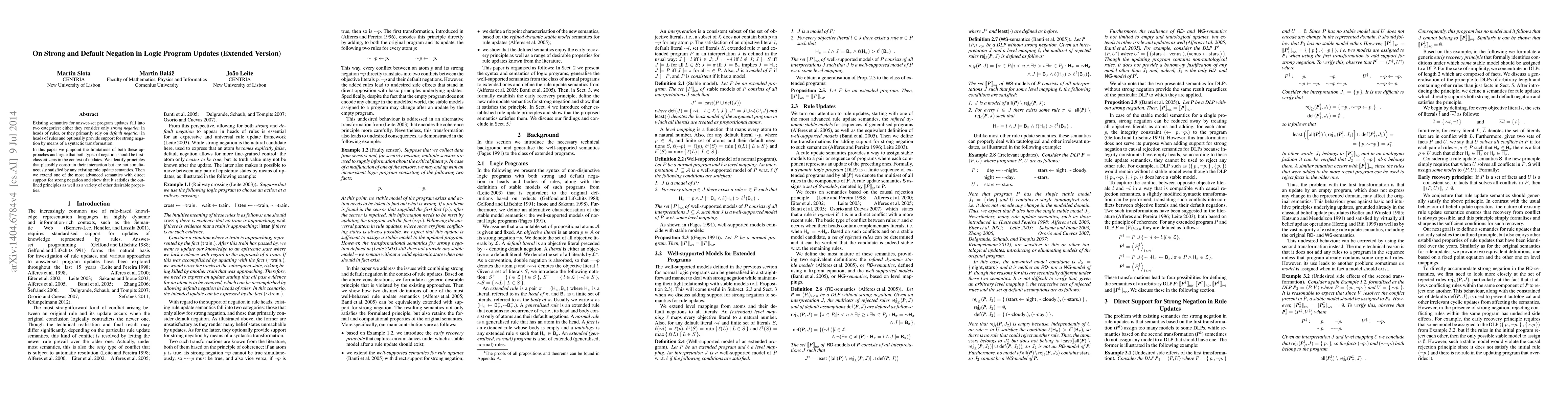 Existing semantics for answer-set program updates fall into two categories: either they consider only strong negation in heads of rules, or they primarily rely on default negation in heads of rules and optionally provide support for strong negation by means of a syntactic transformation. In this paper we pinpoint the limitations of both these approaches and argue that both types of negation should be first-class citizens in the context of updates. We identify principles that plausibly constrain their interaction but are not simultaneously satisfied by any existing rule update semantics. Then we extend one of the most advanced semantics with direct support for strong negation and show that it satisfies the outlined principles as well as a variety of other desirable properties.