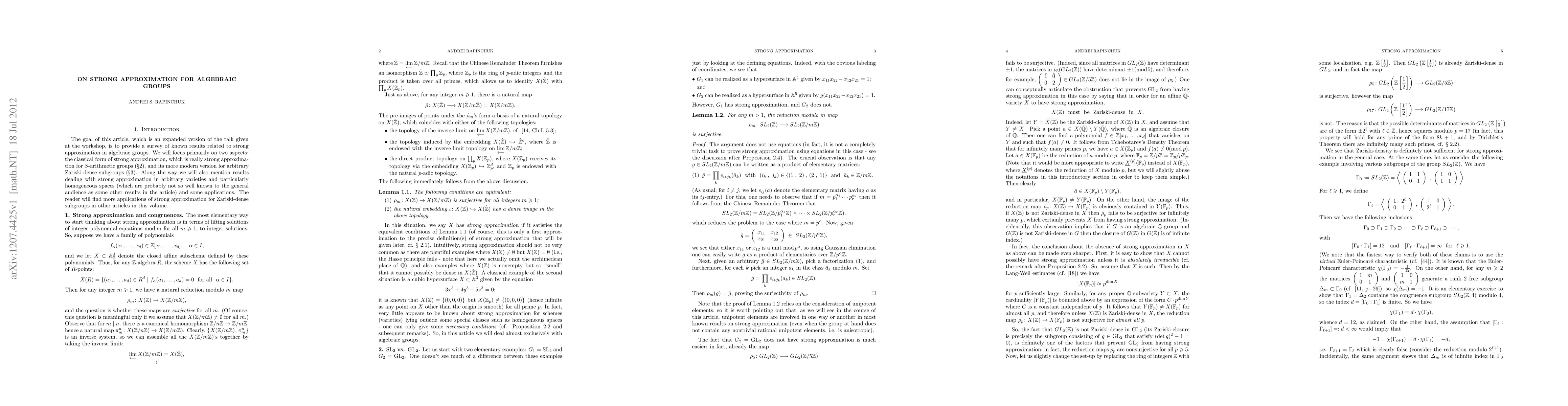 Researchers explored the concept of strong approximation for algebraic groups, finding that certain groups can be approximated to a high degree using specific geometric techniques. This work has implications for understanding properties of algebraic groups and their relationships with other mathematical structures.