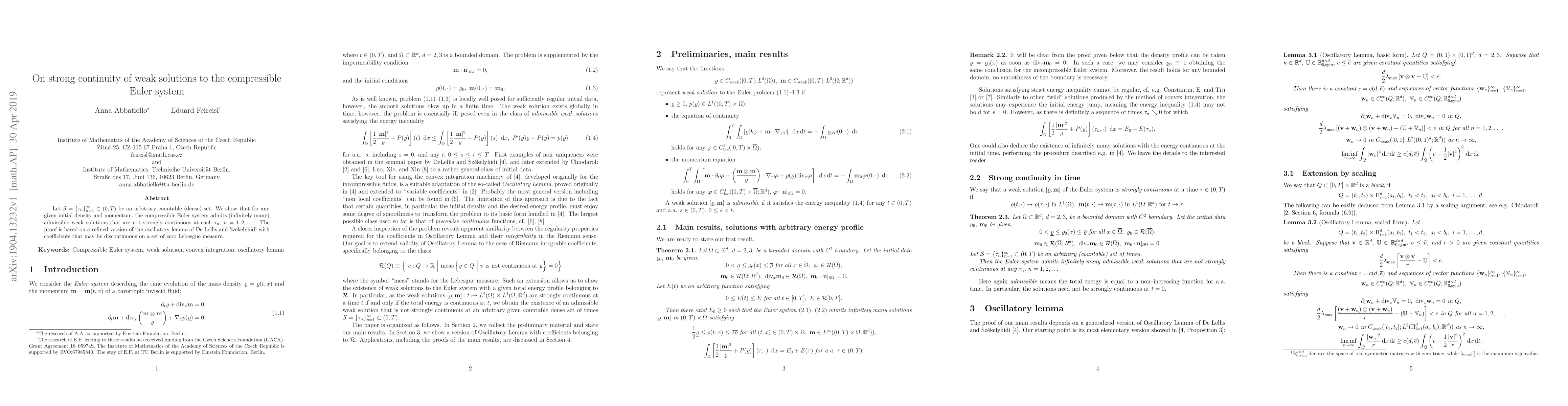 A research paper shows that the compressible Euler system allows for weak solutions that are not strongly continuous at specific points, even with given initial conditions, and presents a new proof method based on an oscillatory lemma.