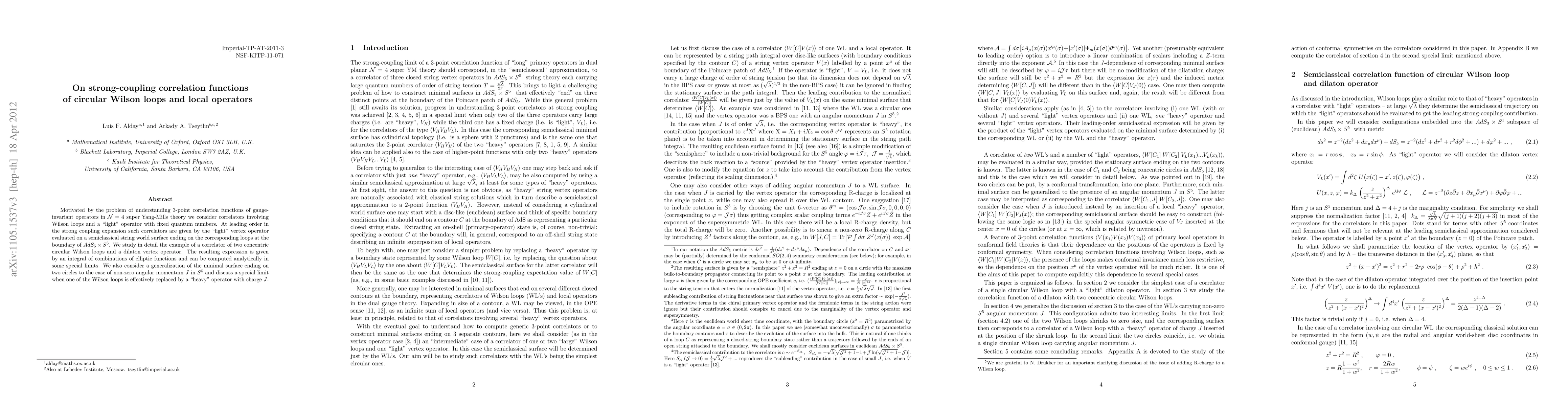 This paper investigates leading-order strong-coupling correlation functions in N=4 super Yang-Mills theory, focusing on gauge-invariant operators, specifically correlators involving circular Wilson loops and a "light" operator. Analytical expressions are derived for these correlators, utilizing semiclassical string world surfaces in AdS_5 x S^5, with particular attention to the case of two concentric loops and a dilaton vertex operator.