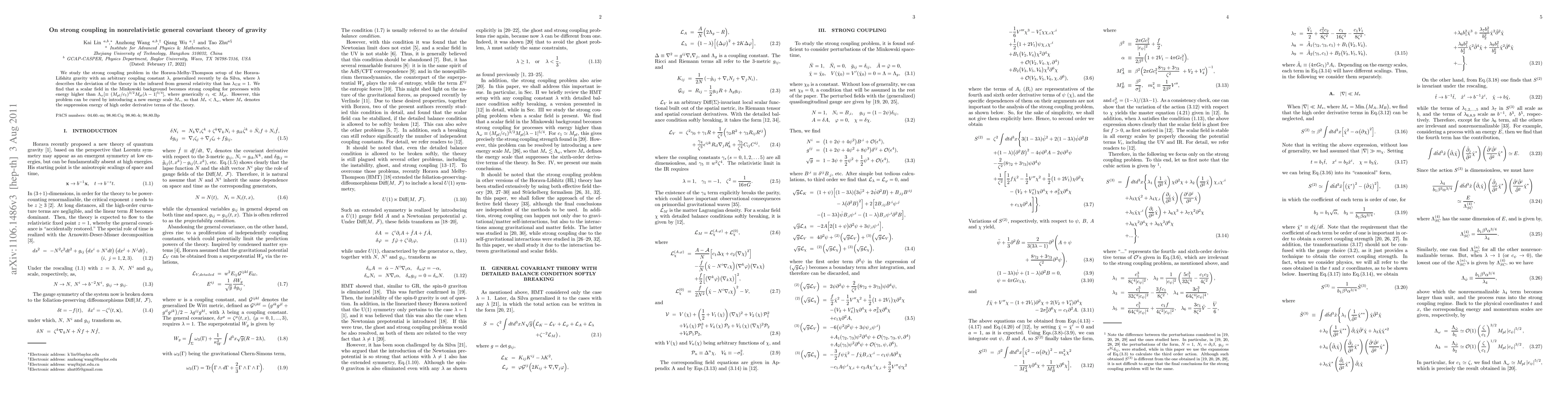 Researchers found that a strong coupling problem exists in Horava-Lifshitz gravity with certain energy thresholds, but proposed a new scale to resolve the issue.