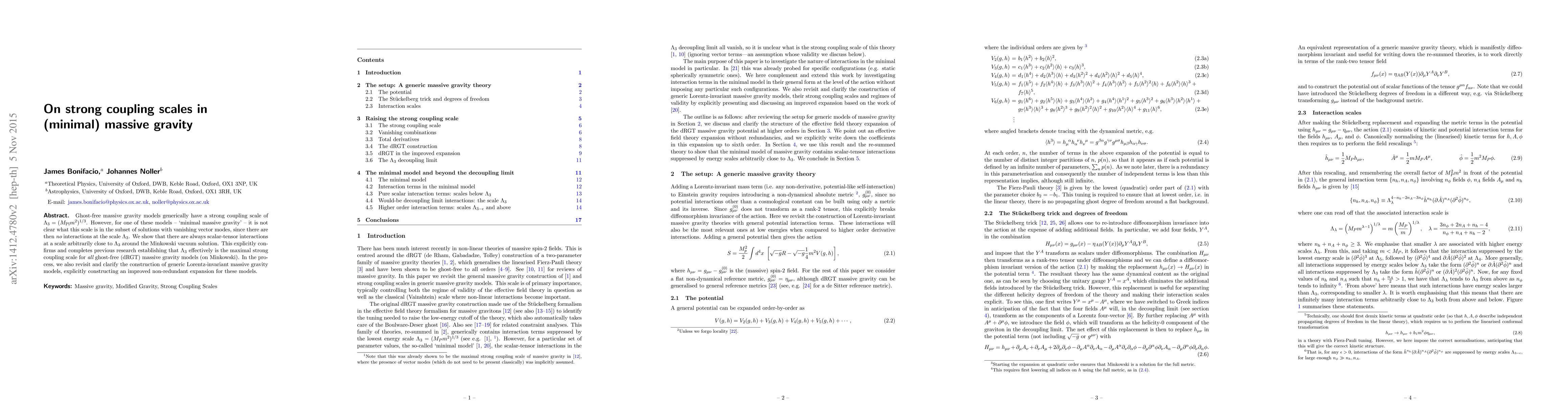 Ghost-free massive gravity models generically have a strong coupling scale of $\Lambda_3 =(M_{\rm Pl} m^2)^{1/3}$. However, for one of these models - `minimal massive gravity' - it is not clear what this scale is in the subset of solutions with vanishing vector modes, since there are then no interactions at the scale $\Lambda_3$. We show that there are always scalar-tensor interactions at a scale arbitrarily close to $\Lambda_3$ around the Minkowski vacuum solution. This explicitly confirms and completes previous research establishing that $\Lambda_3$ effectively is the maximal strong coupling scale for all ghost-free (dRGT) massive gravity models (on Minkowski). In the process, we also revisit and clarify the construction of generic Lorentz-invariant massive gravity models, explicitly constructing an improved non-redundant expansion for these models.
