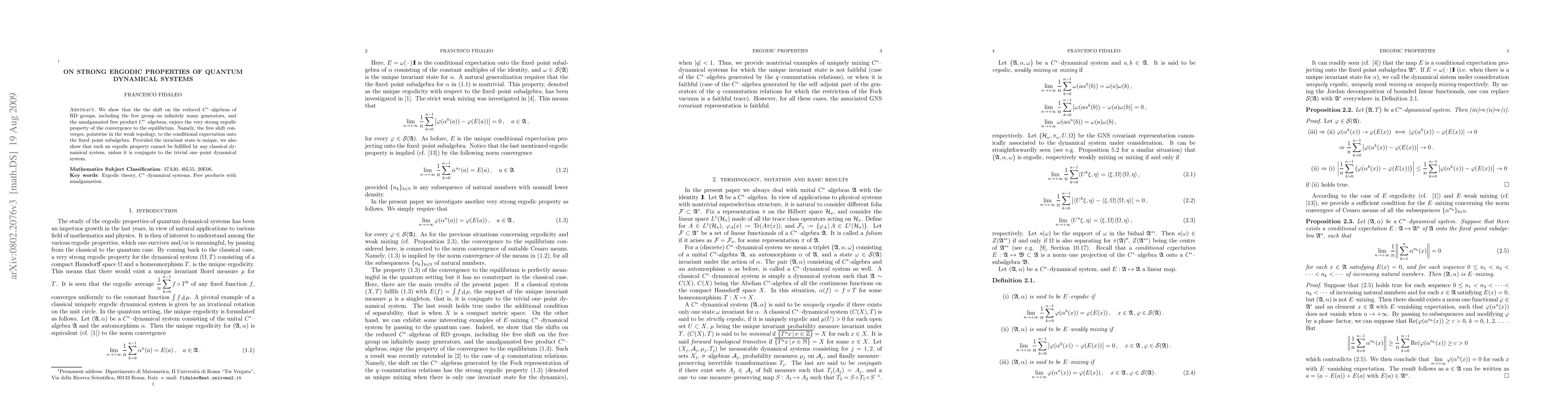 We show that the the shift on the reduced C*--algebras of RD--groups, including the free group on infinitely many generators, and the amalgamated free product C*--algebras, enjoys the very strong ergodic property of the convergence to the equilibrium. Namely, the free shift converges, pointwise in the weak topology, to the conditional expectation onto the fixed--point subalgebra. Provided the invariant state is unique, we also show that such an ergodic property cannot be fulfilled by any classical dynamical system, unless it is conjugate to the trivial one--point dynamical system.