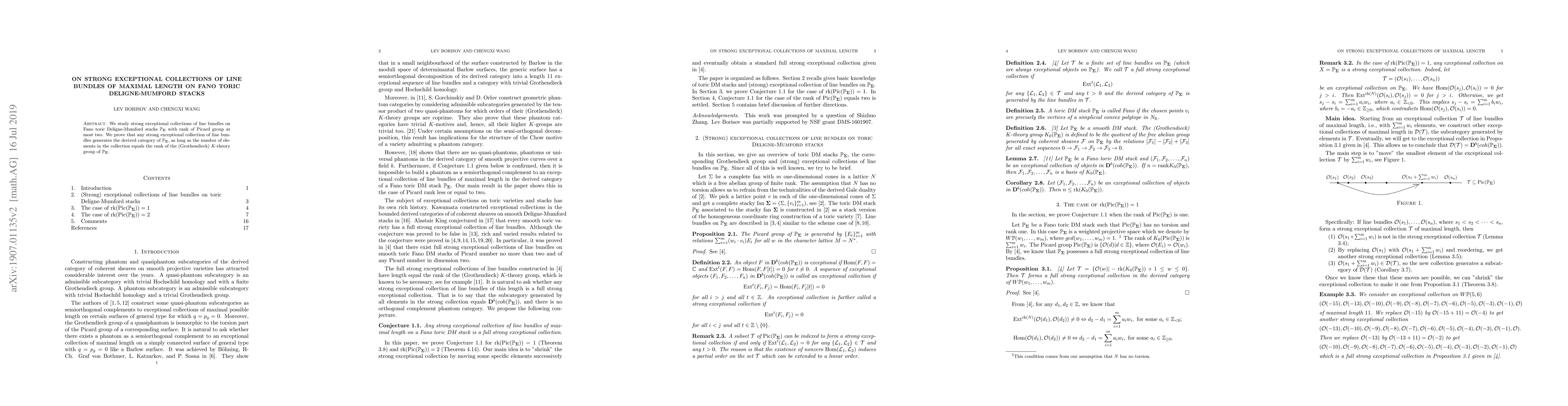 Summary: This paper investigates strong exceptional collections of line bundles on Fano toric Deligne-Mumford stacks, demonstrating that such collections fully generate the derived category when their count matches the rank of the K-theory group.