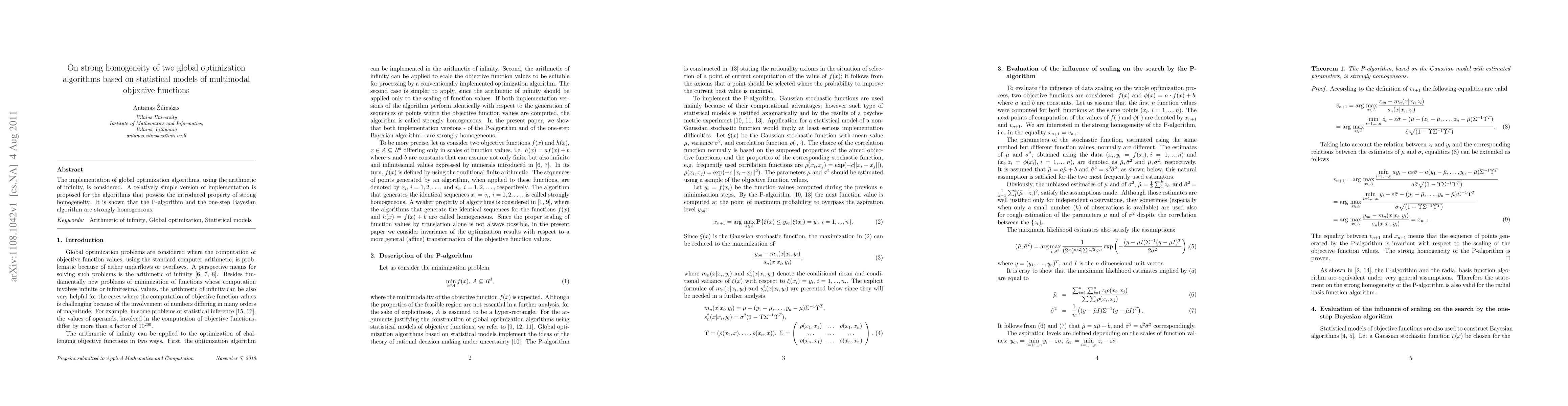 The implementation of global optimization algorithms, using the arithmetic of infinity, is considered. A relatively simple version of implementation is proposed for the algorithms that possess the introduced property of strong homogeneity. It is shown that the P-algorithm and the one-step Bayesian algorithm are strongly homogeneous.