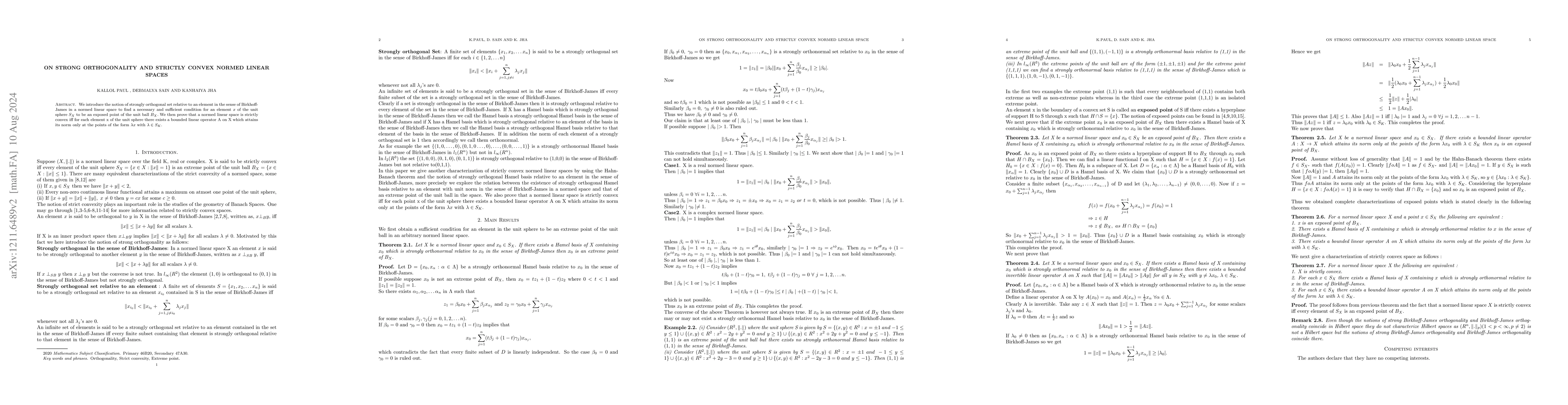 We introduce the notion of strongly orthogonal set relative to an element in the sense of Birkhoff-James in a normed linear space to find a necessary and sufficient condition for an element $ x $ of the unit sphere $ S_{X}$ to be an exposed point of the unit ball $ B_X .$ We then prove that a normed linear space is strictly convex iff for each element x of the unit sphere there exists a bounded linear operator A on X which attains its norm only at the points of the form $ \lambda x $ with $ \lambda \in S_{K} $.