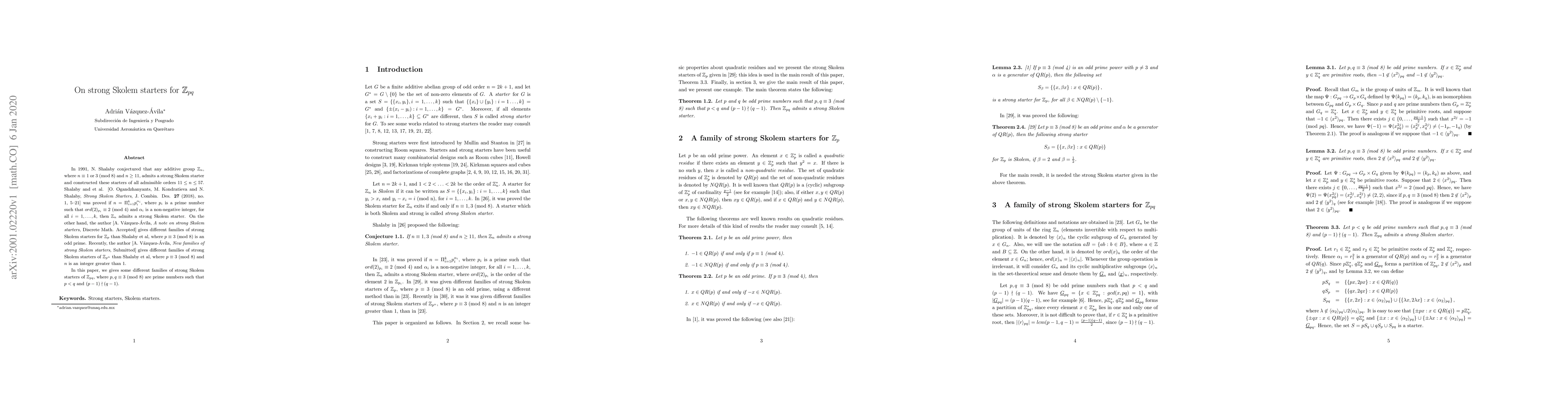 all $i=1,\ldots,k$, then $\mathbb{Z}_n$ admits a strong Skolem starter. On the
