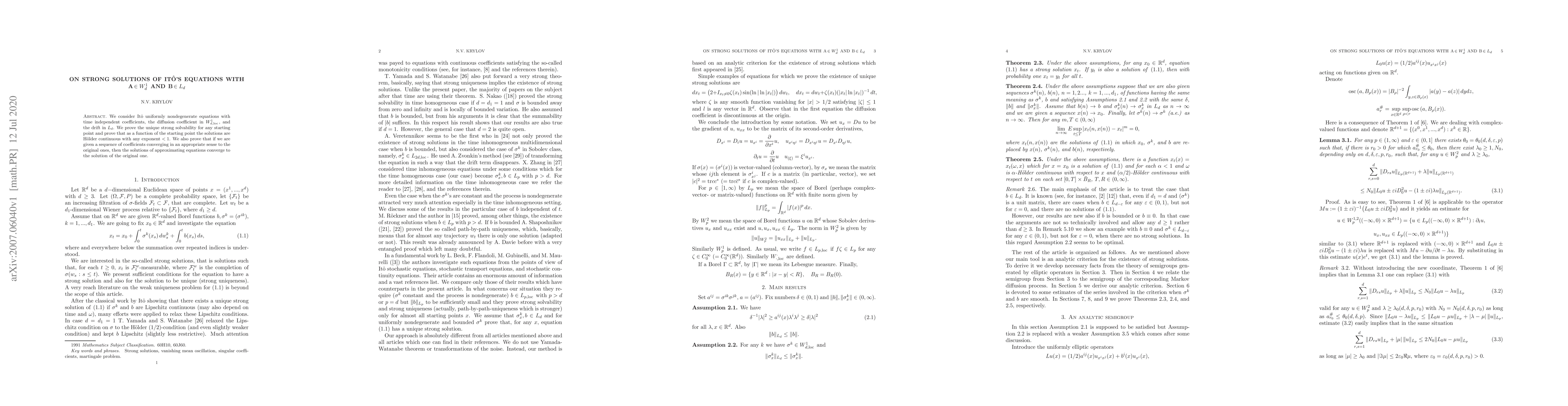 This research paper proves that solutions to It ext{o} equations with specific coefficients exist uniquely and are H"older continuous, even when the starting point changes. The solutions also converge under certain conditions as the coefficients approach their original values.