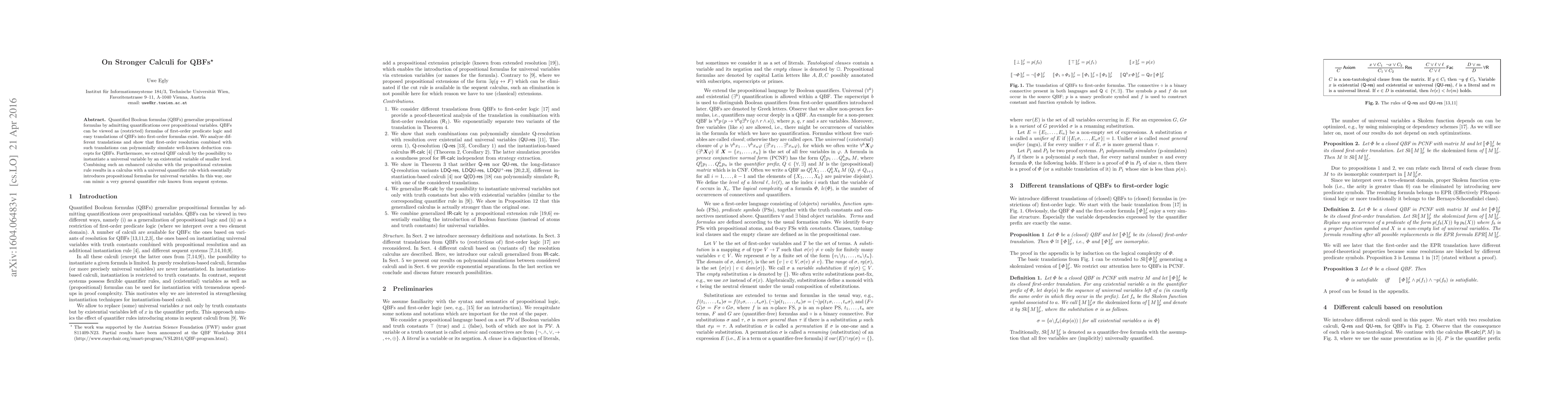 Quantified Boolean formulas (QBFs) generalize propositional formulas by admitting quantifications over propositional variables. QBFs can be viewed as (restricted) formulas of first-order predicate logic and easy translations of QBFs into first-order formulas exist. We analyze different translations and show that first-order resolution combined with such translations can polynomially simulate well-known deduction concepts for QBFs. Furthermore, we extend QBF calculi by the possibility to instantiate a universal variable by an existential variable of smaller level. Combining such an enhanced calculus with the propositional extension rule results in a calculus with a universal quantifier rule which essentially introduces propositional formulas for universal variables. In this way, one can mimic a very general quantifier rule known from sequent systems.