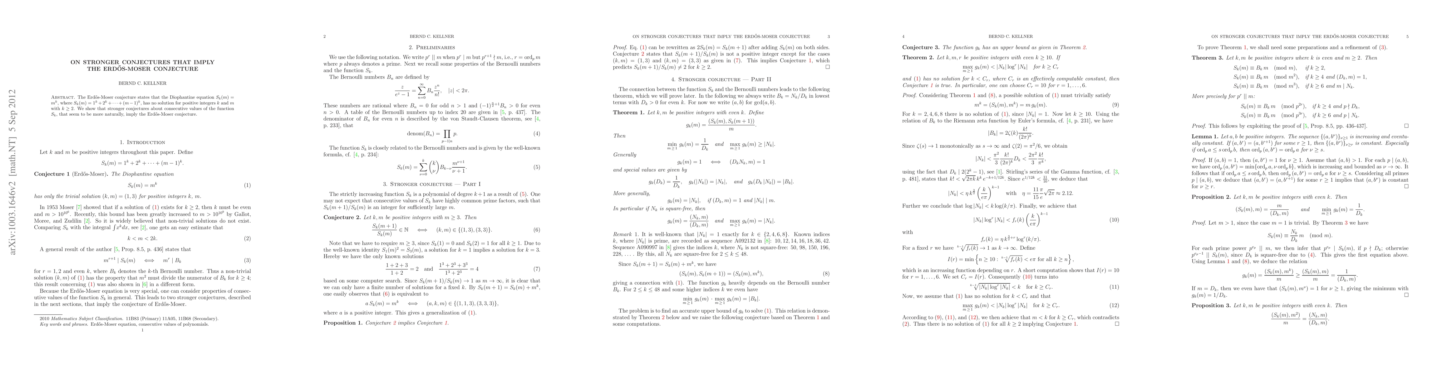 Summary: The paper demonstrates that stronger conjectures regarding the behavior of consecutive values of the sum function $S_k$ naturally imply the Erdős-Moser conjecture, which posits no solutions exist for the Diophantine equation $S_k(m) = m^k$ for $k \geq 2$.