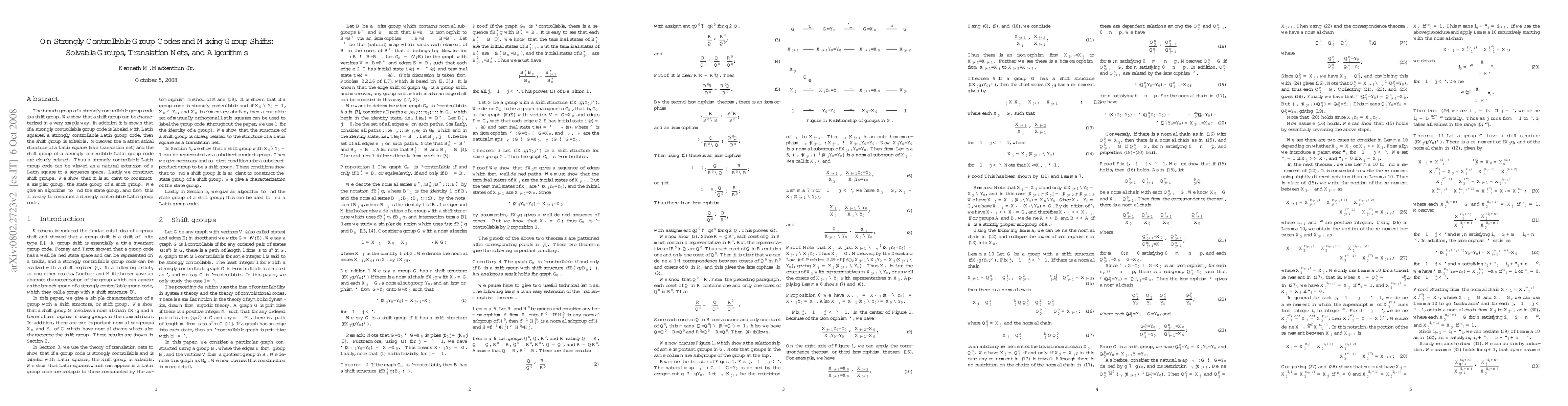 The branch group of a strongly controllable group code is a shift group. We show that a shift group can be characterized in a very simple way. In addition it is shown that if a strongly controllable group code is labeled with Latin squares, a strongly controllable Latin group code, then the shift group is solvable. Moreover the mathematical structure of a Latin square (as a translation net) and the shift group of a strongly controllable Latin group code are closely related. Thus a strongly controllable Latin group code can be viewed as a natural extension of a Latin square to a sequence space. Lastly we construct shift groups. We show that it is sufficient to construct a simpler group, the state group of a shift group. We give an algorithm to find the state group, and from this it is easy to construct a stronlgy controllable Latin group code.