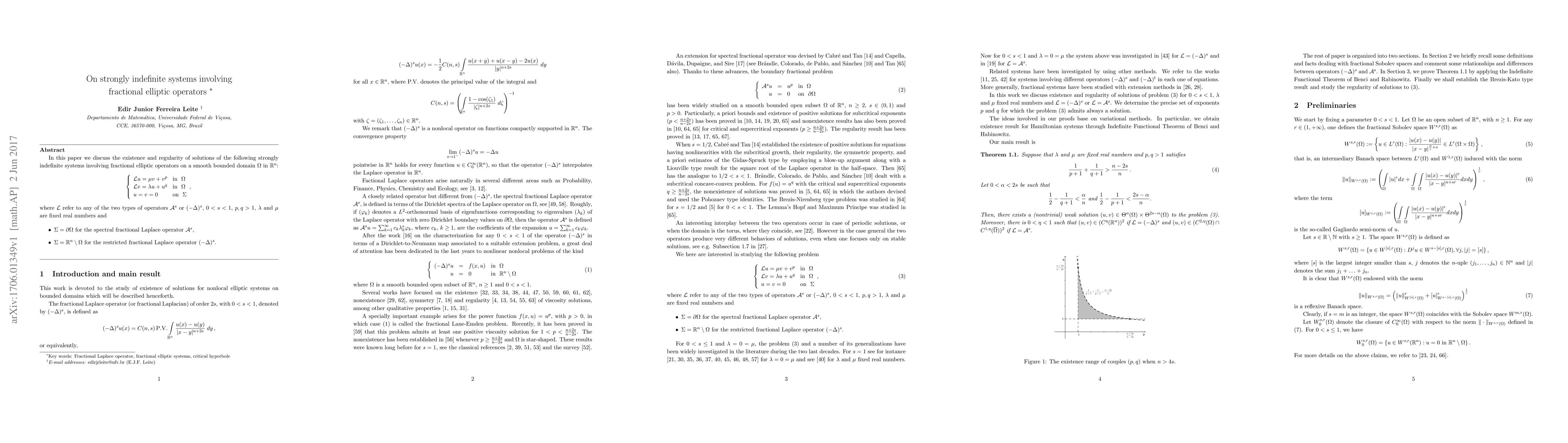 In this paper we discuss the existence and regularity of solutions of strongly indefinite systems involving fractional elliptic operators on a smooth bounded domain $\Omega$ in $\R^n$.