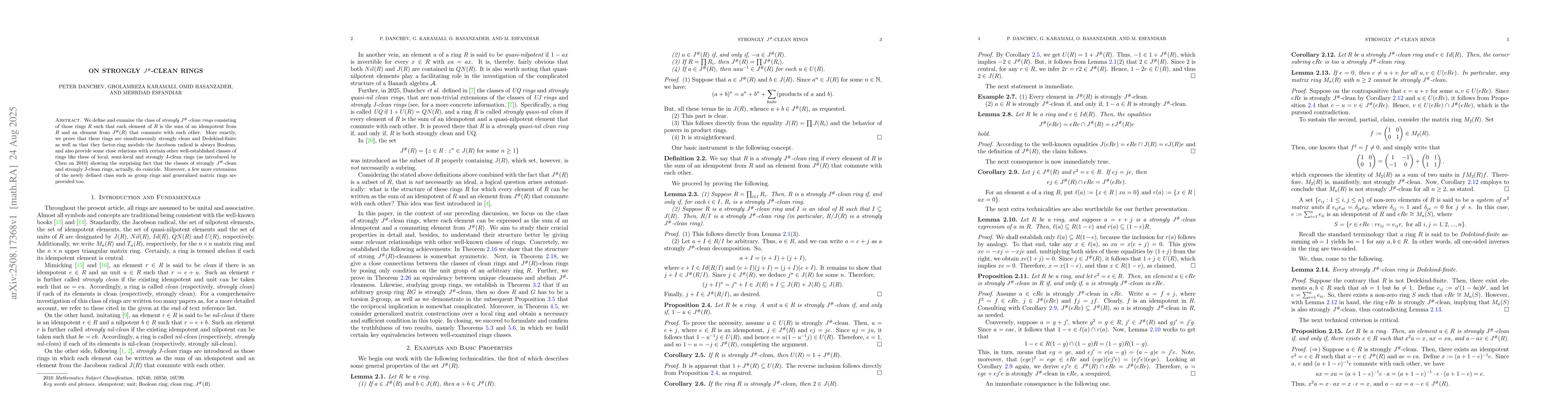We define and examine the class of {\it strongly \( J^{\#} \)-clean rings} consisting of those rings $R$ such that each element of $R$ is the sum of an idempotent from $R$ and an element from $J^{\#}(R)$ that commute with each other. More exactly, we prove that these rings are simultaneously strongly clean and Dedekind-finite as well as that they factor-ring modulo the Jacobson radical is always Boolean, and also provide some close relations with certain other well-established classes of rings like these of local, semi-local and strongly J-clean rings (as introduced by Chen on 2010) showing the surprising fact that the classes of strongly \( J^{\#} \)-clean and strongly J-clean rings, actually, do coincide. Moreover, a few more extensions of the newly defined class such as group rings and generalized matrix rings are provided too.