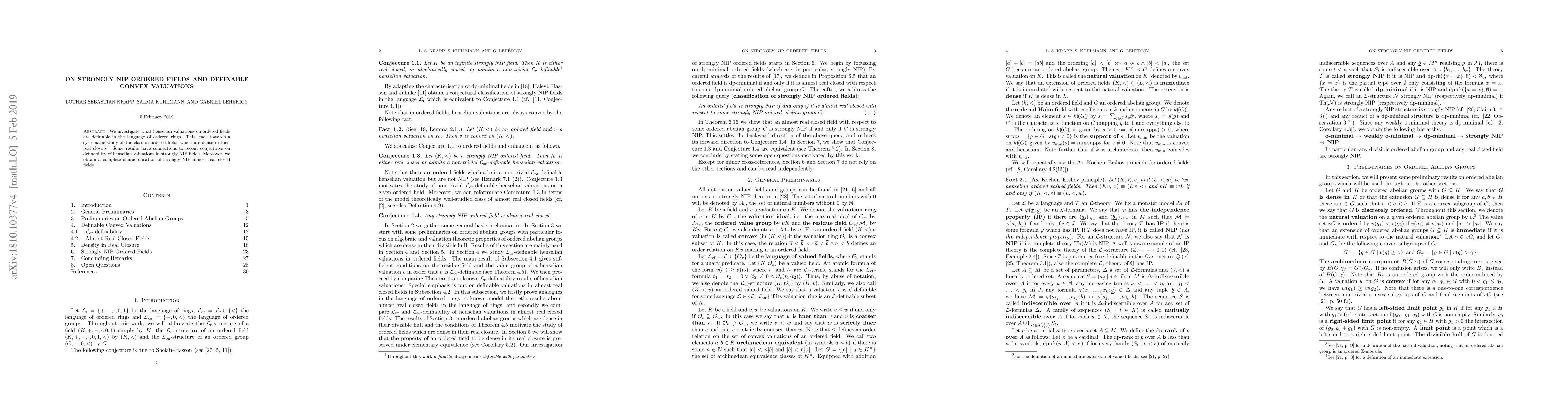 This paper explores henselian valuations on ordered fields that are definable in ordered ring languages, focusing on dense ordered fields within their real closures. It also provides a full characterization of strongly NIP almost real closed fields and links findings to conjectures on the definability of henselian valuations in such fields.