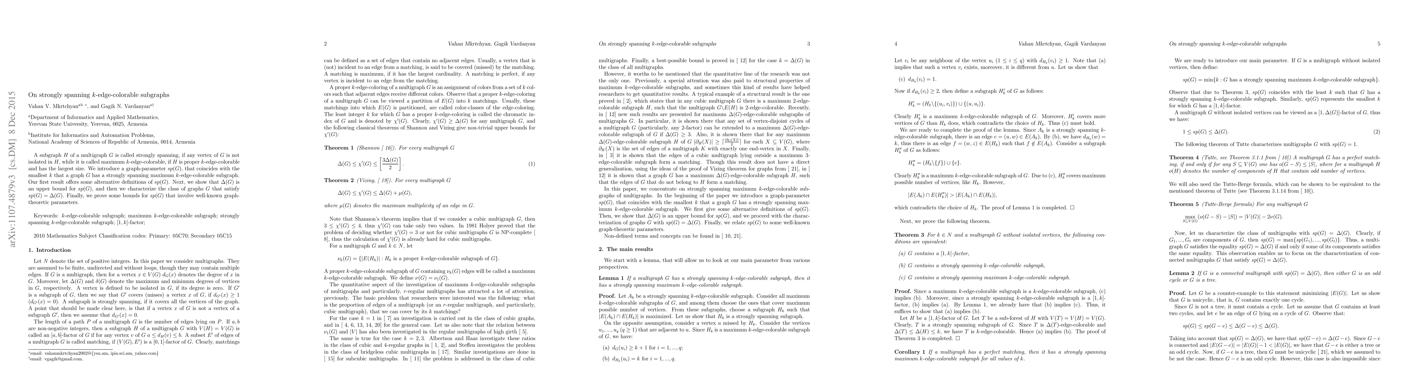 A subgraph $H$ of a multigraph $G$ is called strongly spanning, if any vertex of $G$ is not isolated in $H$, while it is called maximum $k$-edge-colorable, if $H$ is proper $k$-edge-colorable and has the largest size. We introduce a graph-parameter $sp(G)$, that coincides with the smallest $k$ that a graph $G$ has a strongly spanning maximum $k$-edge-colorable subgraph. Our first result offers some alternative definitions of $sp(G)$. Next, we show that $\Delta(G)$ is an upper bound for $sp(G)$, and then we characterize the class of graphs $G$ that satisfy $sp(G)=\Delta(G)$. Finally, we prove some bounds for $sp(G)$ that involve well-known graph-theoretic parameters.