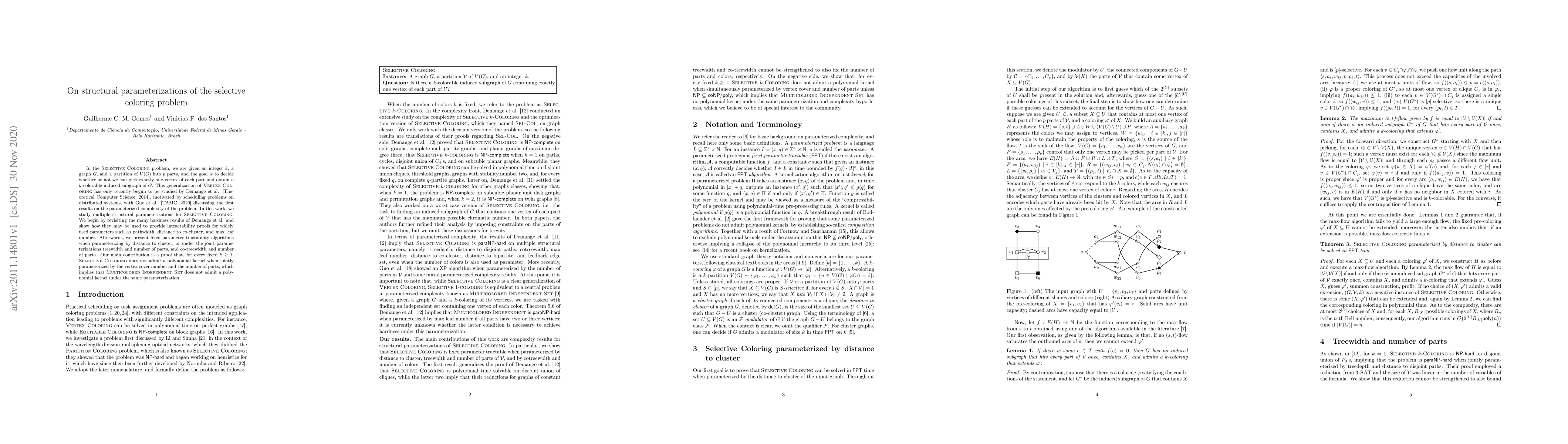 This paper explores structural parameterizations for the Selective Coloring problem, demonstrating intractability for parameters like pathwidth and showing fixed-parameter tractability for others like distance to cluster. The main result proves that Selective Coloring does not admit a polynomial kernel when parameterized by vertex cover and number of parts.