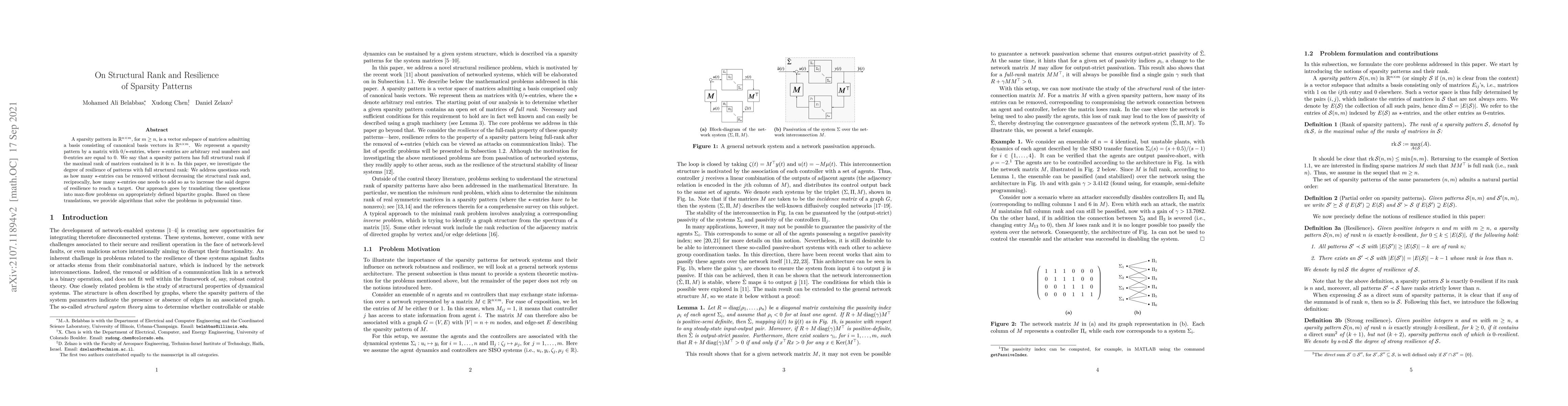 A sparsity pattern in $\mathbb{R}^{n \times m}$, for $m\geq n$, is a vector subspace of matrices admitting a basis consisting of canonical basis vectors in $\mathbb{R}^{n \times m}$. We represent a sparsity pattern by a matrix with $0/\star$-entries, where $\star$-entries are arbitrary real numbers and $0$-entries are equal to $0$. We say that a sparsity pattern has full structural rank if the maximal rank of matrices contained in it is $n$. In this paper, we investigate the degree of resilience of patterns with full structural rank: We address questions such as how many $\star$-entries can be removed without decreasing the structural rank and, reciprocally, how many $\star$-entries one needs to add so as to increase the said degree of resilience to reach a target. Our approach goes by translating these questions into max-flow problems on appropriately defined bipartite graphs. Based on these translations, we provide algorithms that solve the problems in polynomial time.