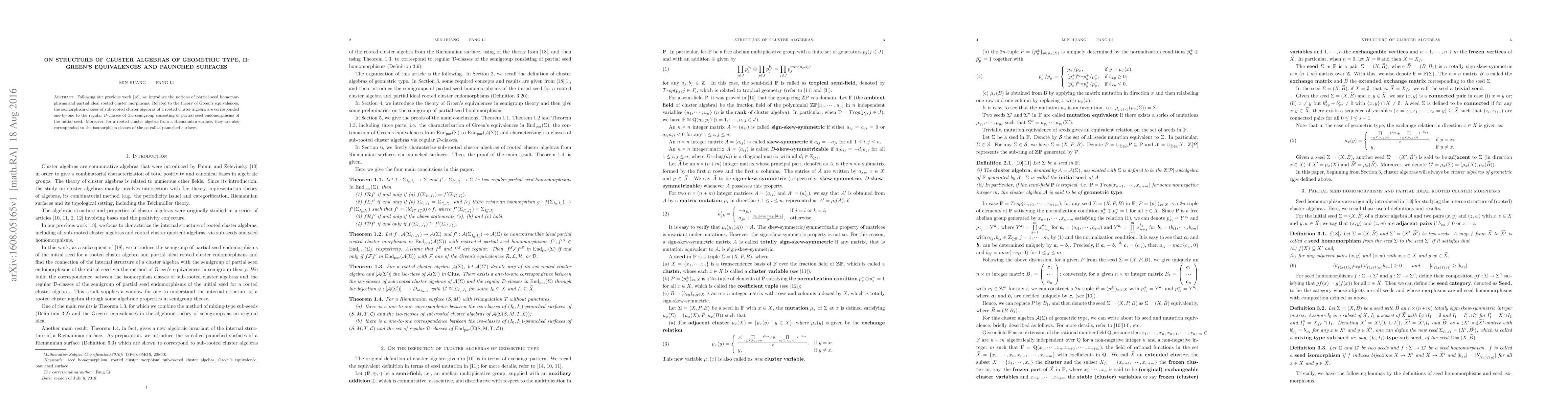 Following our previous work [18], we introduce the notions of partial seed homomorphisms and partial ideal rooted cluster morphisms. Related to the theory of Green's equivalences, the isomorphism classes of sub-rooted cluster algebras of a rooted cluster algebra are corresponded one-by-one to the regular $\mathcal D$-classes of the semigroup consisting of partial seed endomorphisms of the initial seed. Moreover, for a rooted cluster algebra from a Riemannian surface, they are also corresponded to the isomorphism classes of the so-called paunched surfaces.