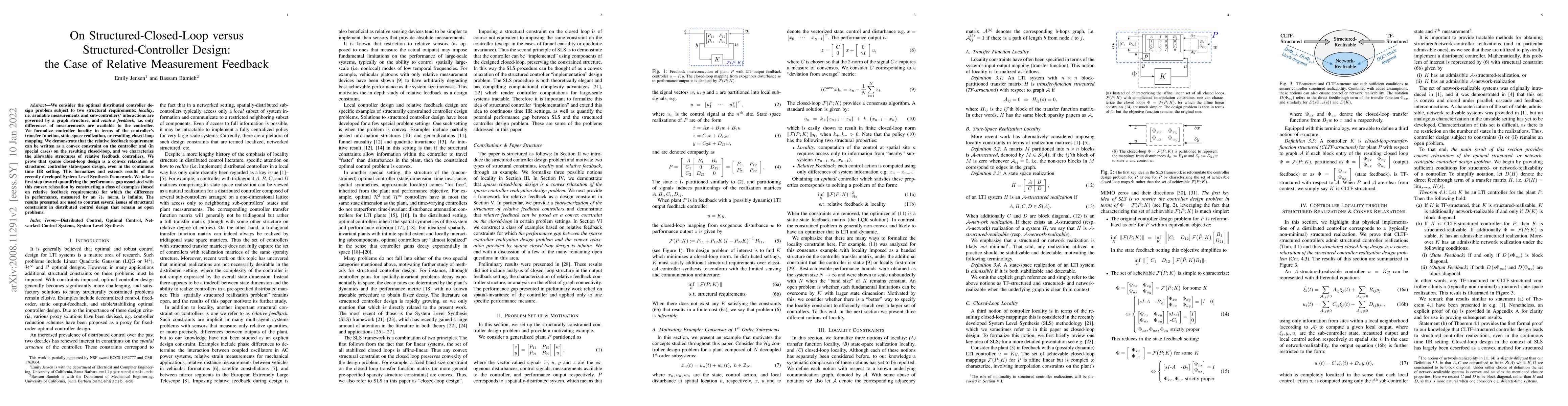 This paper explores optimal distributed controller design under structural locality and relative measurement feedback constraints, demonstrating that relative feedback forms a convex constraint on controllers. It shows that sparse closed-loop design is a convex relaxation of structured controller design, extending System Level Synthesis results and highlighting infinite performance gaps in certain cases.