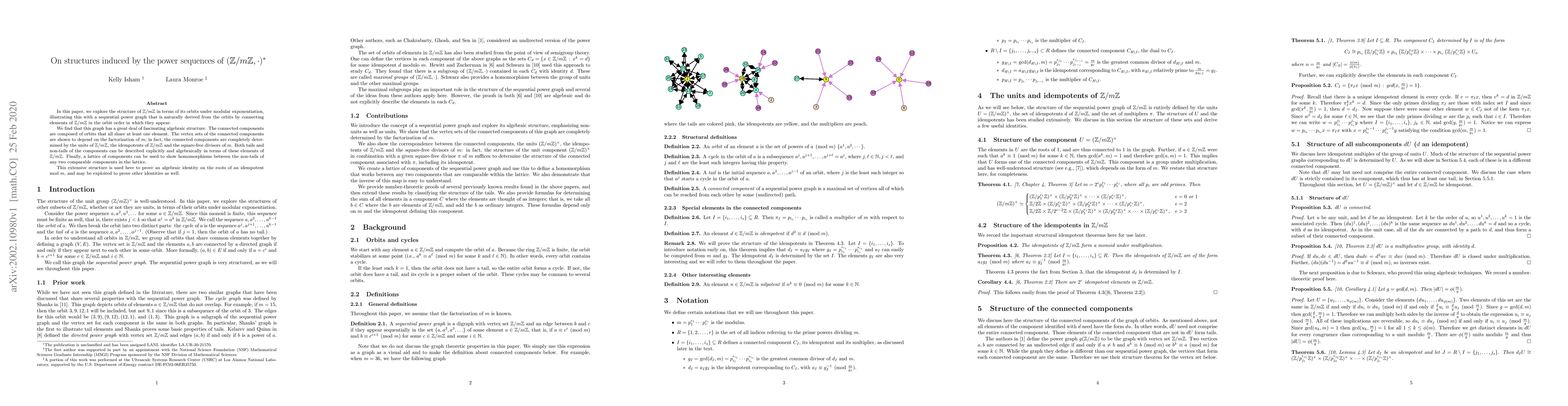 This paper investigates the structure of $\mathbb{Z}/ m\mathbb{Z}$ through modular exponentiation orbits, represented in a sequential power graph. The connected components of this graph are determined by the units, idempotents, and square-free divisors of $m$, and are used to prove algebraic identities on idempotent roots mod $m$.