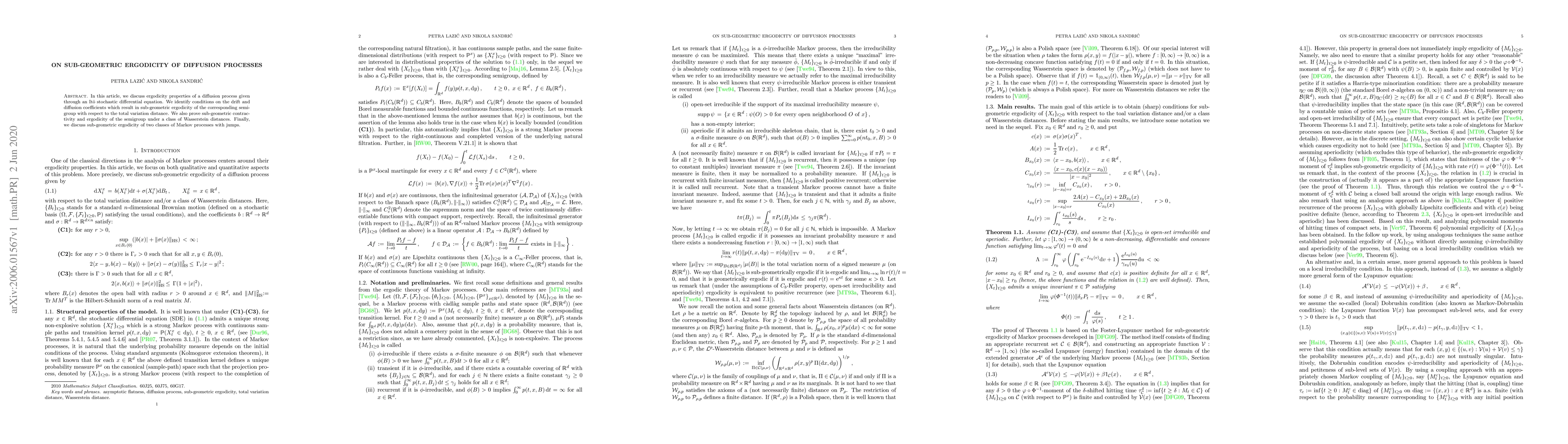This paper investigates the ergodicity properties of diffusion processes defined by Itô stochastic differential equations, identifying conditions for sub-geometric ergodicity of the corresponding semigroup. It also proves sub-geometric contractivity and ergodicity under Wasserstein distances and examines sub-geometric ergodicity in Markov processes with jumps.