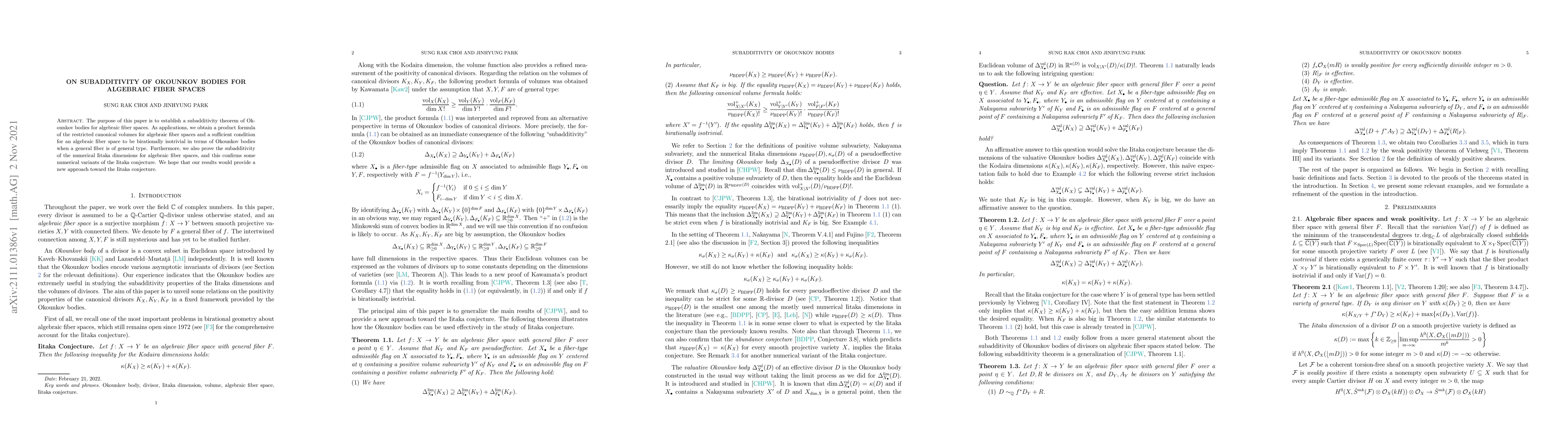 This paper establishes a subadditivity theorem for Okounkov bodies in algebraic fiber spaces, leading to a product formula for restricted canonical volumes and a condition for birational isotriviality. It also confirms numerical variants of the Iitaka conjecture and suggests a new approach to the broader conjecture.