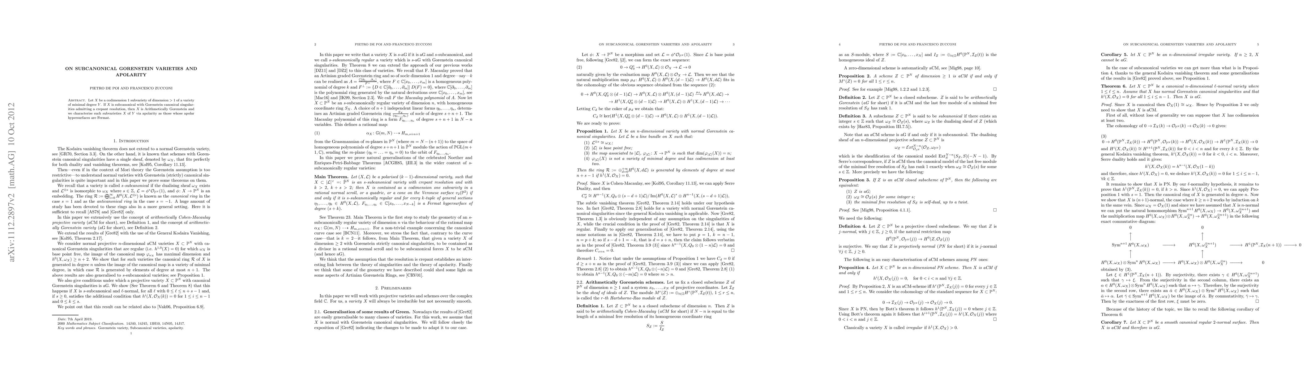 This paper investigates subcanonical Gorenstein varieties within a higher-dimensional variety, proving that subvarieties with crepant resolutions and Gorenstein singularities are Arithmetically Gorenstein, characterized by their Fermat apolar hypersurfaces.