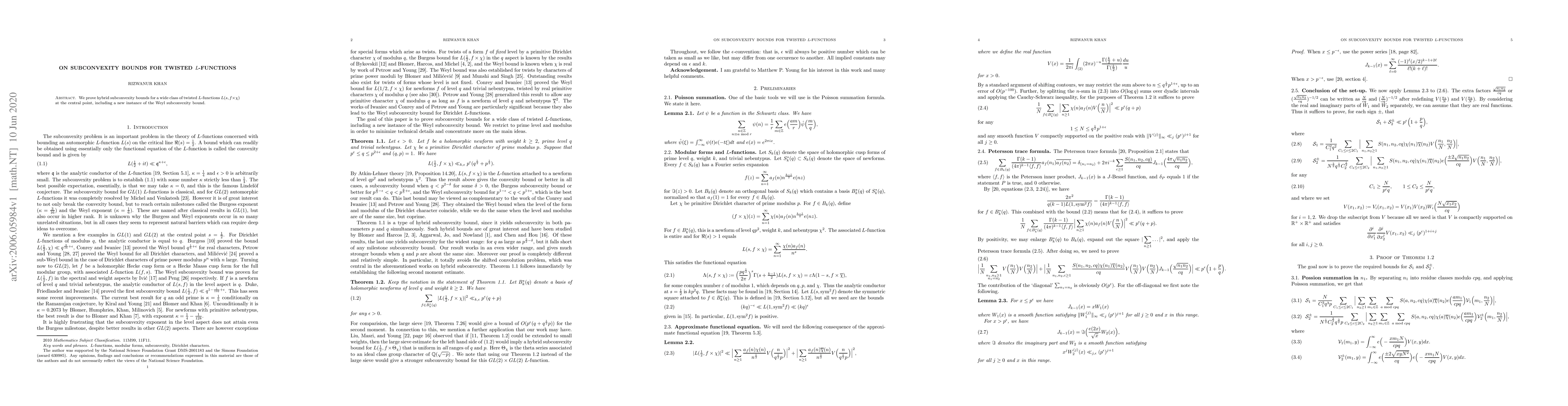 We prove hybrid subconvexity bounds for a wide class of twisted L-functions $L(s,f\times \chi)$ at the central point, including a new instance of the Weyl subconvexity bound.