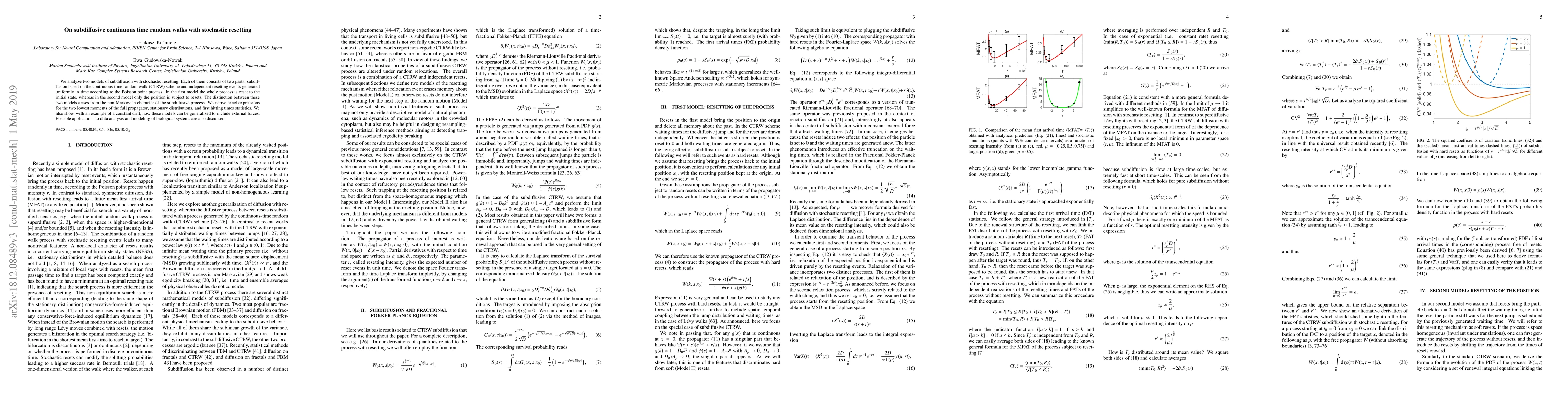 This paper investigates two subdiffusive continuous time random walk models with stochastic resetting, deriving exact expressions for moments, stationary distributions, and first hitting times. The models differ based on whether the entire process or just the position is reset, highlighting the non-Markovian nature of subdiffusion. Applications to data analysis and biological systems are explored.