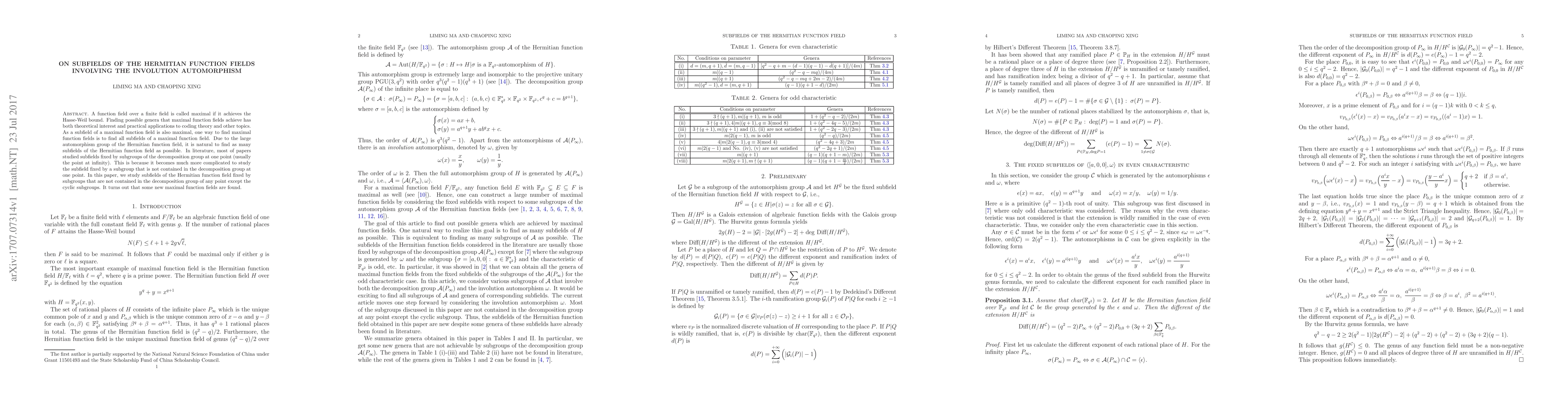A function field over a finite field is called maximal if it achieves the Hasse-Weil bound. Finding possible genera that maximal function fields achieve has both theoretical interest and practical applications to coding theory and other topics. As a subfield of a maximal function field is also maximal, one way to find maximal function fields is to find all subfields of a maximal function field. Due to the large automorphism group of the Hermitian function field, it is natural to find as many subfields of the Hermitian function field as possible. In literature, most of papers studied subfields fixed by subgroups of the decomposition group at one point (usually the point at infinity). This is because it becomes much more complicated to study the subfield fixed by a subgroup that is not contained in the decomposition group at one point. In this paper, we study subfields of the Hermitian function field fixed by subgroups that are not contained in the decomposition group of any point except the cyclic subgroups. It turns out that some new maximal function fields are found.