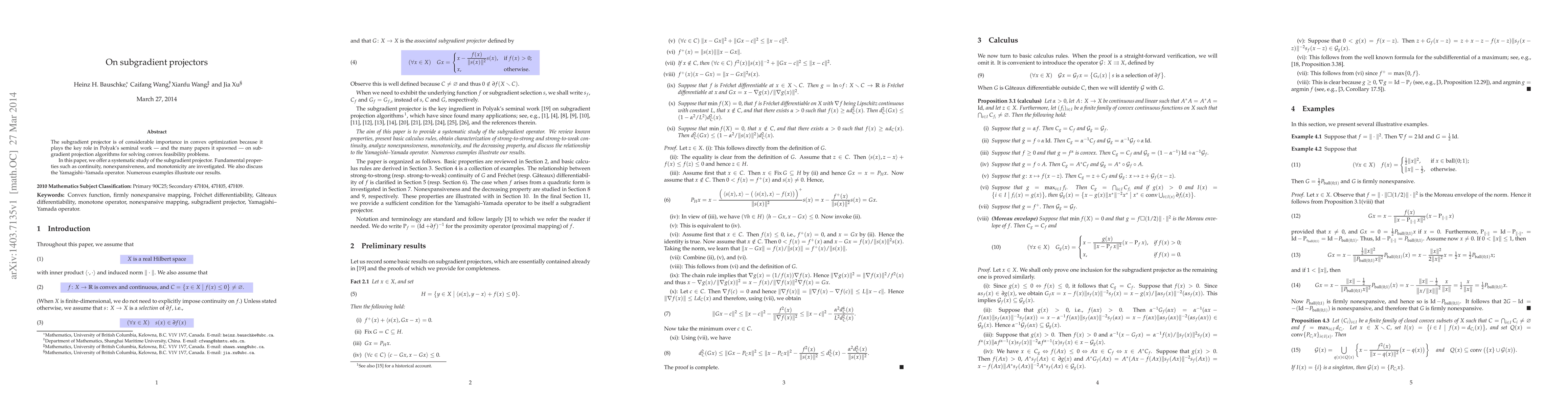 This paper systematically examines the subgradient projector, highlighting its fundamental properties like continuity, nonexpansiveness, and monotonicity, and discusses the Yamagishi-Yamada operator, with numerous examples to illustrate the findings.