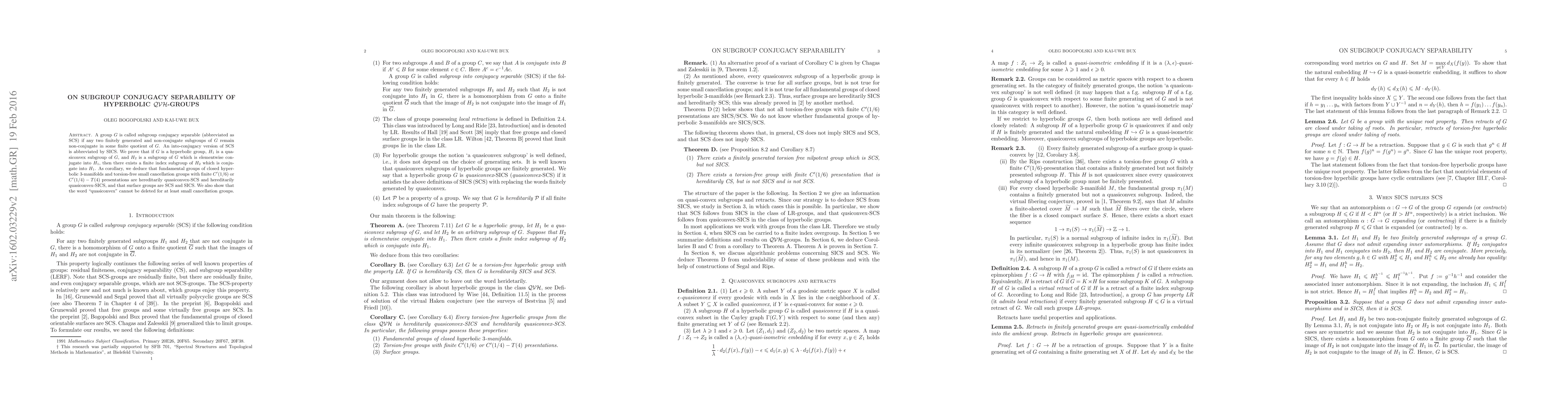 This paper proves that hyperbolic QVH-groups with quasiconvex subgroups exhibit subgroup conjugacy separability and its into-conjugacy version, thereby extending these properties to fundamental groups of closed hyperbolic 3-manifolds and torsion-free small cancellation groups.