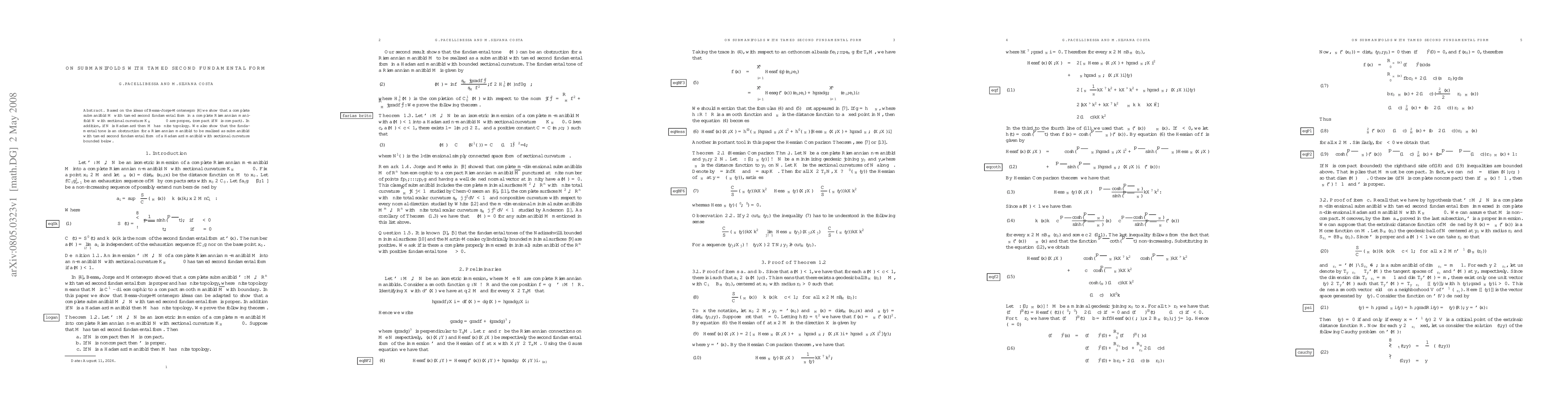 We show that a complete submanifold $M$ with tamed second fundamental form in a complete Riemannian manifold $N$ with sectional curvature $K_{N}\leq \kappa \leq 0$ are proper, (compact if $N$ is compact). In addition, if $N$ is Hadamard then $M$ has finite topology. We also show that the fundamental tone is an obstruction for a Riemannian manifold to be realized as submanifold with tamed second fundamental form of a Hadamard manifold with sectional curvature bounded below.