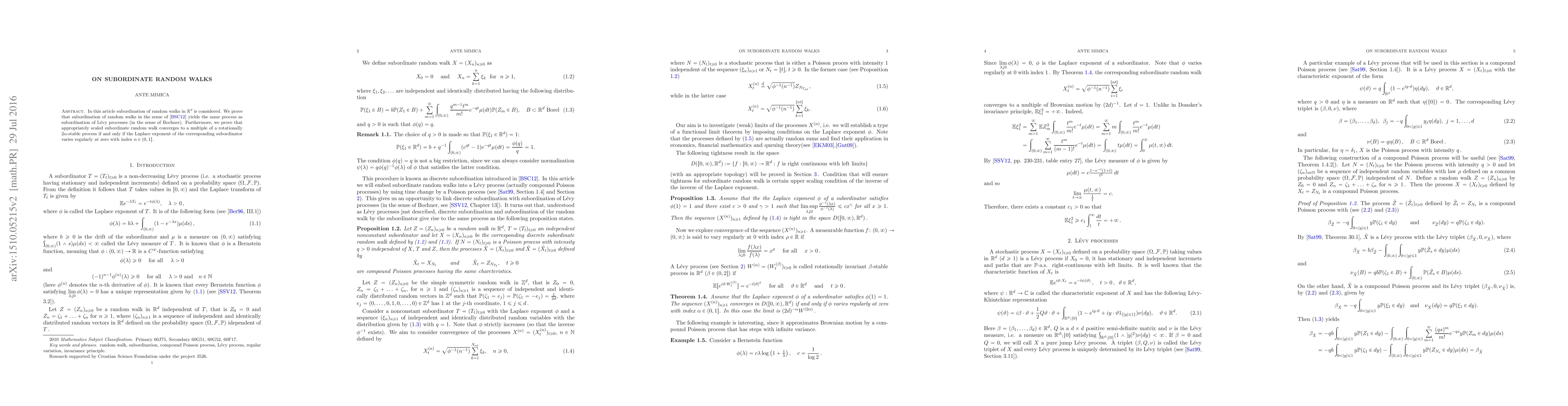 This paper investigates the subordination of random walks in $R^d$ and demonstrates that it results in the same process as the subordination of Lévy processes. It also shows that a scaled subordinate random walk converges to a rotationally $2\alpha$-stable process if the Laplace exponent of the subordinator varies regularly at zero with index $\alpha \in (0,1]$.