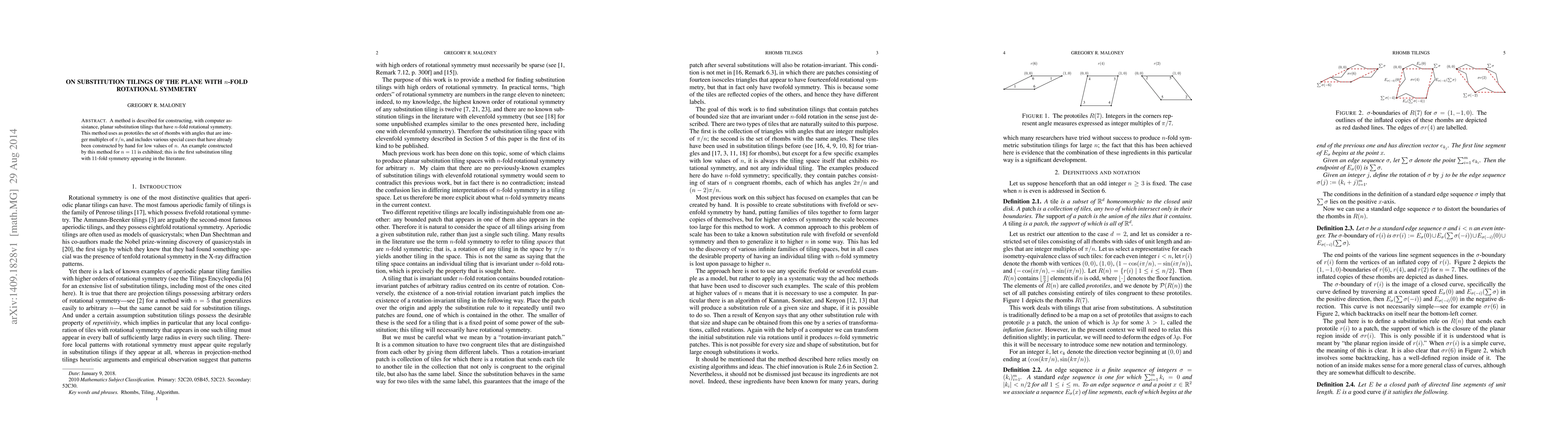 A combination of computer search and mathematical analysis was used to find planar substitution tilings with n-fold rotation symmetry.