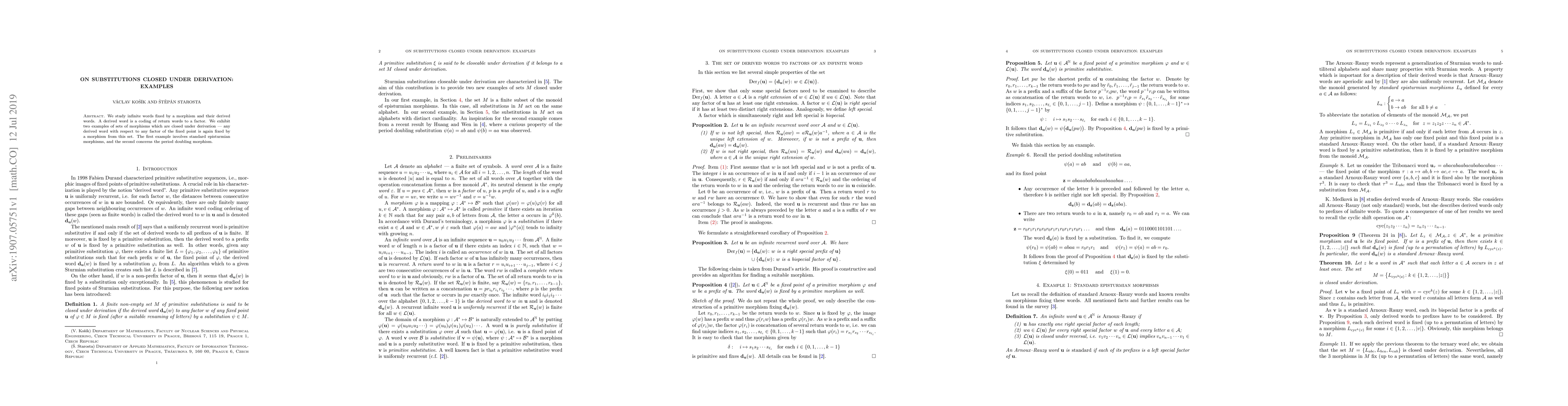 We study infinite words fixed by a morphism and their derived words. A derived word is a coding of return words to a factor. We exhibit two examples of sets of morphisms which are closed under derivation --- any derived word with respect to any factor of the fixed point is again fixed by a morphism from this set. The first example involves standard episturmian morphisms, and the second concerns the period doubling morphism.