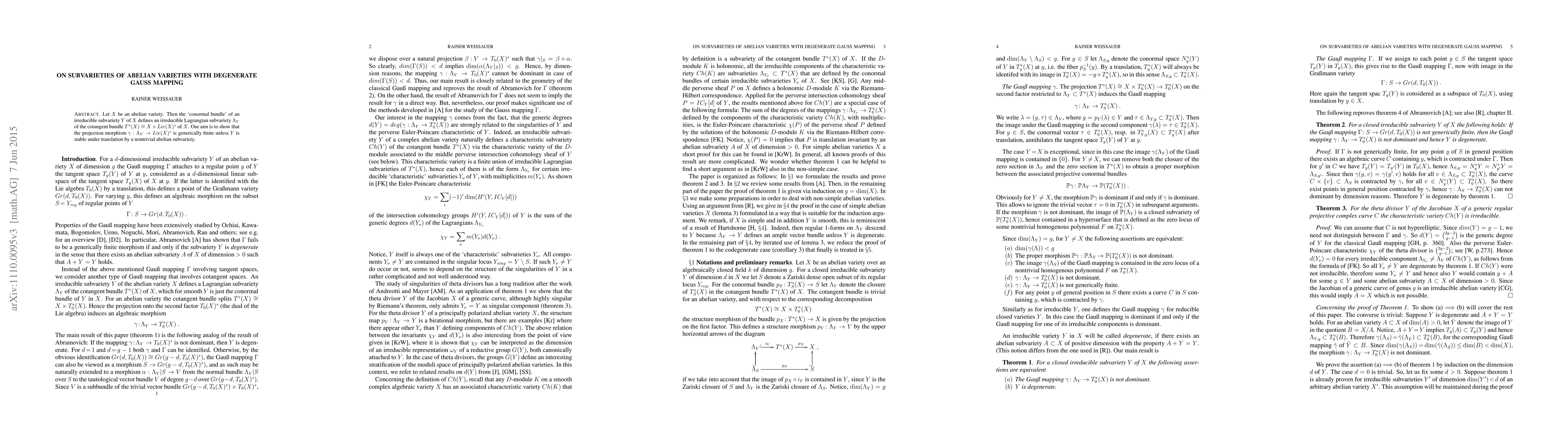 A research paper establishes a condition for when the Gauss mapping from a subvariety of an abelian variety is not dominant, leading to implications about degenerate subvarieties.