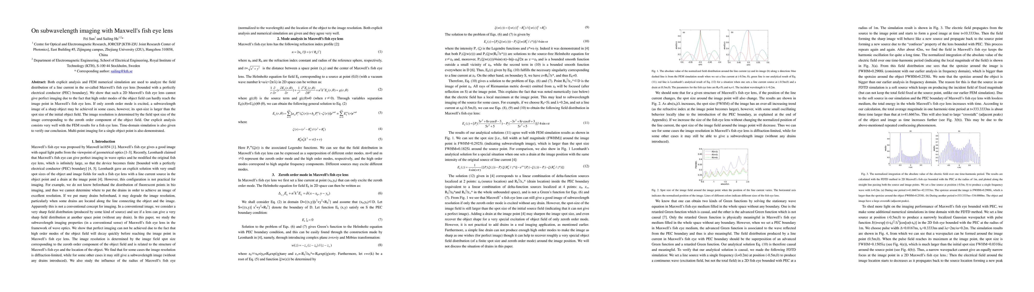 This paper investigates the imaging capabilities of Maxwell's fish eye lenses using both explicit analysis and FEM simulations, concluding that perfect imaging is unattainable due to the difficulty of high-order modes reaching the image point. Subwavelength imaging is possible only when the zeroth order mode is excited, but the spot size is larger than the original object field.