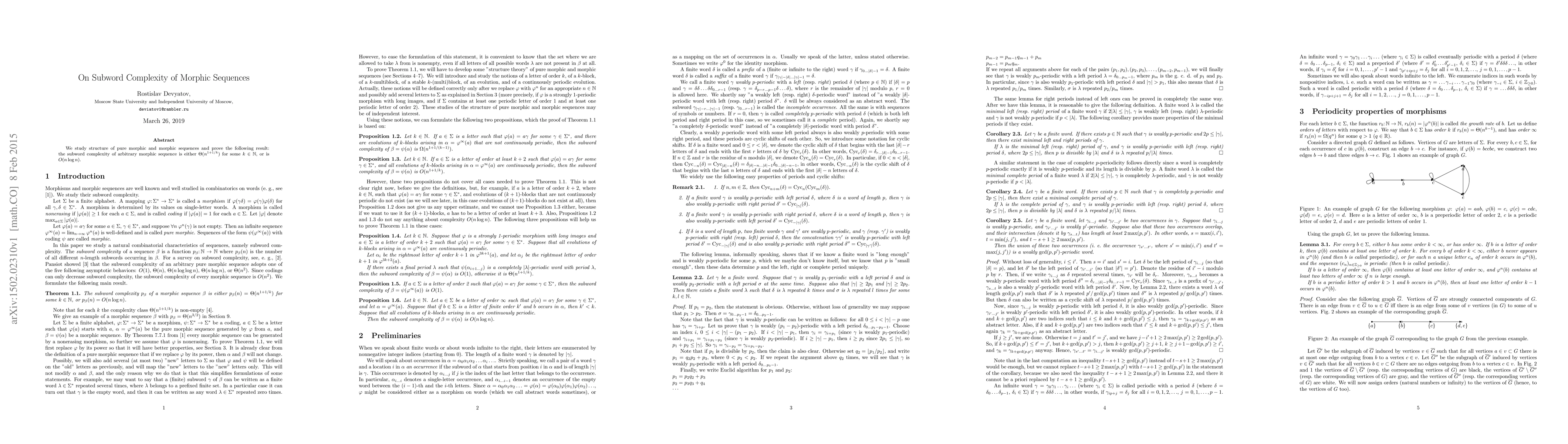 Summary: This paper investigates the subword complexity of morphic sequences, proving that it follows either a $\Theta(n^{1+1/k})$ growth pattern for some natural number $k$, or it is bounded by $O(n \log n)$.