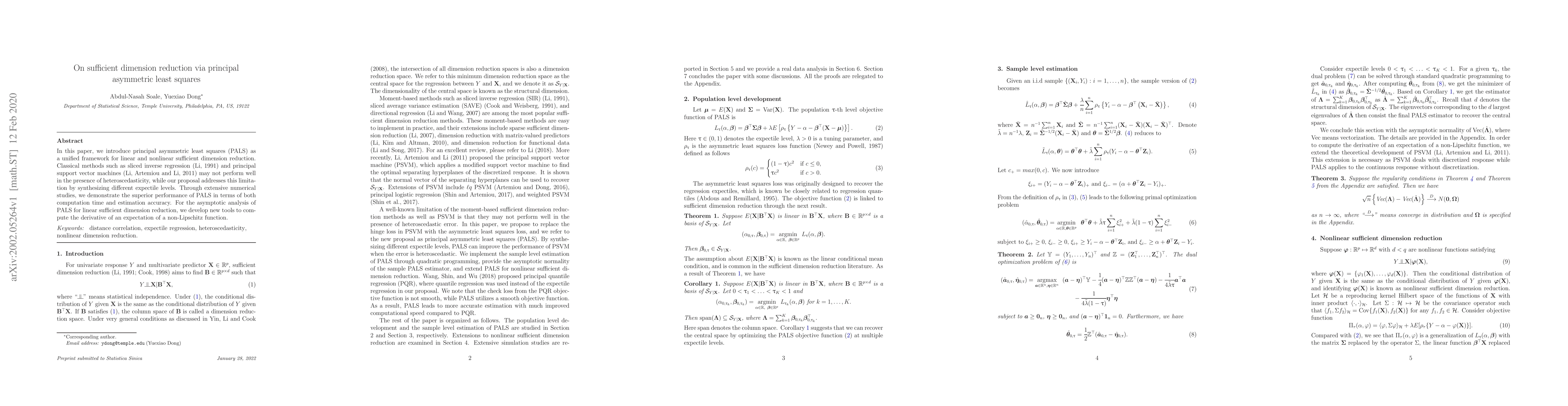 This paper proposes principal asymmetric least squares (PALS) for sufficient dimension reduction, addressing heteroscedasticity issues in classical methods. PALS is shown to outperform existing techniques in computational efficiency and estimation accuracy, supported by new analytical tools for its asymptotic behavior.