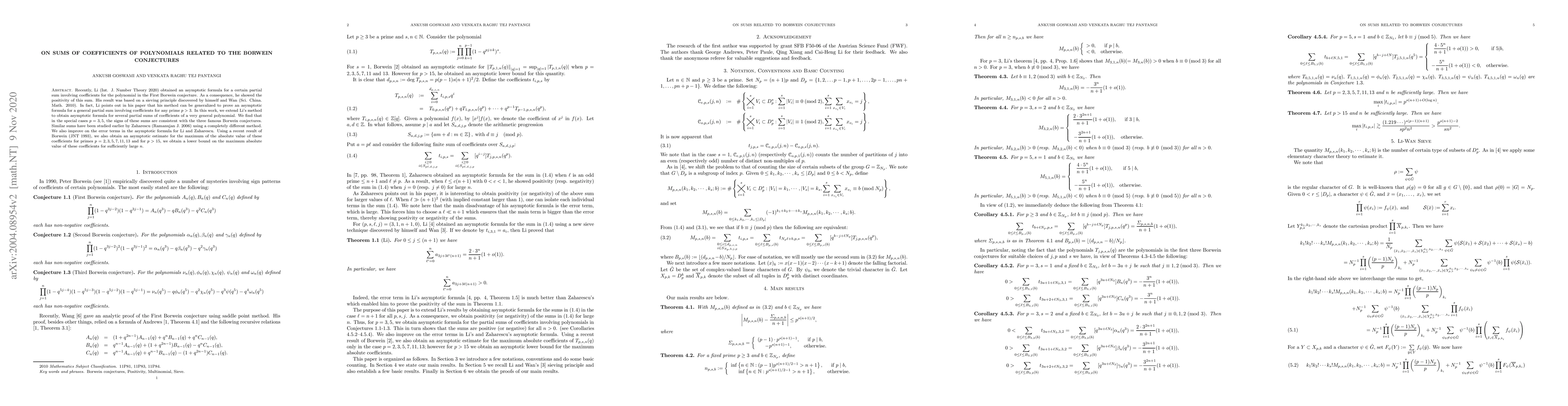 This paper extends a method by Li to derive asymptotic formulas for various partial sums of coefficients of general polynomials, finding sign consistency with Borwein conjectures for primes p=3, 5. It also improves error terms from previous works by Li and Zaharescu, and provides bounds on maximum coefficient absolute values for different primes.