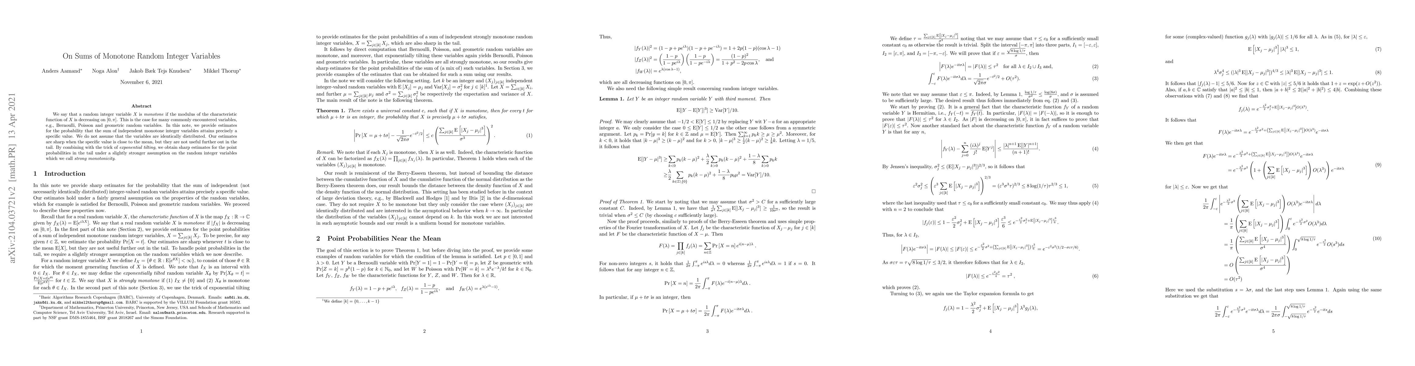 This paper provides estimates for the probability that the sum of independent monotone integer variables attains a specific value, with sharper estimates possible under stronger assumptions.