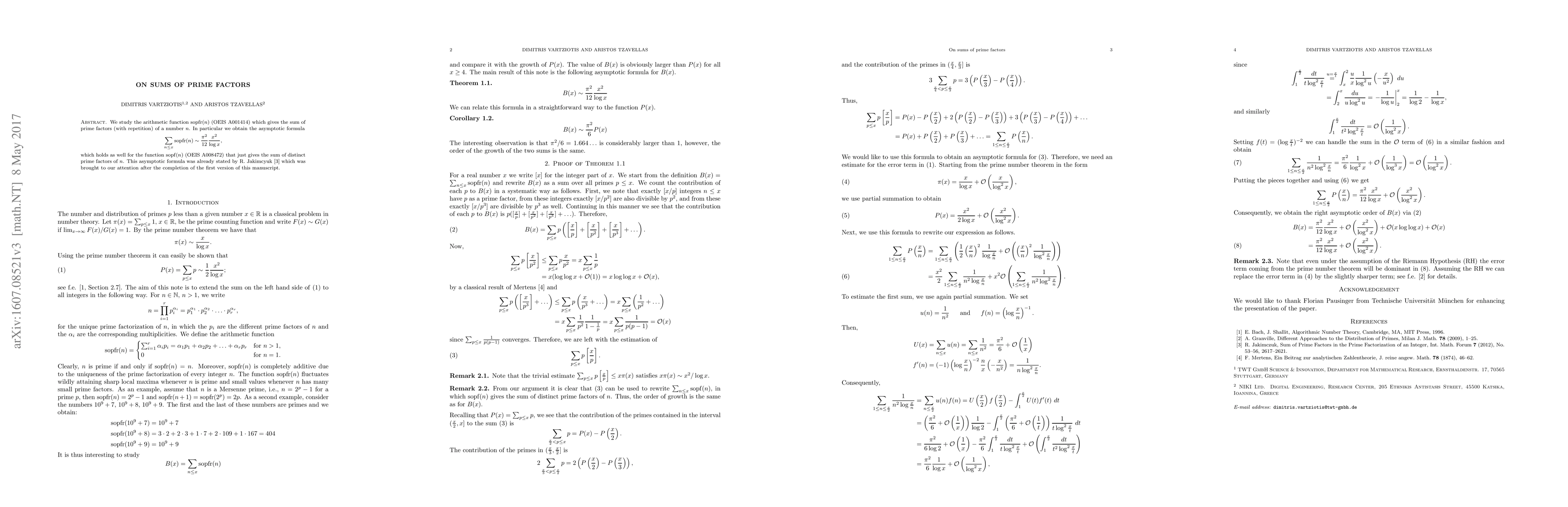 Researchers discovered an asymptotic formula that estimates the sum of prime factors (with repetition) for numbers up to x, finding it to be π^2 / 12 * x^2 / log(x).