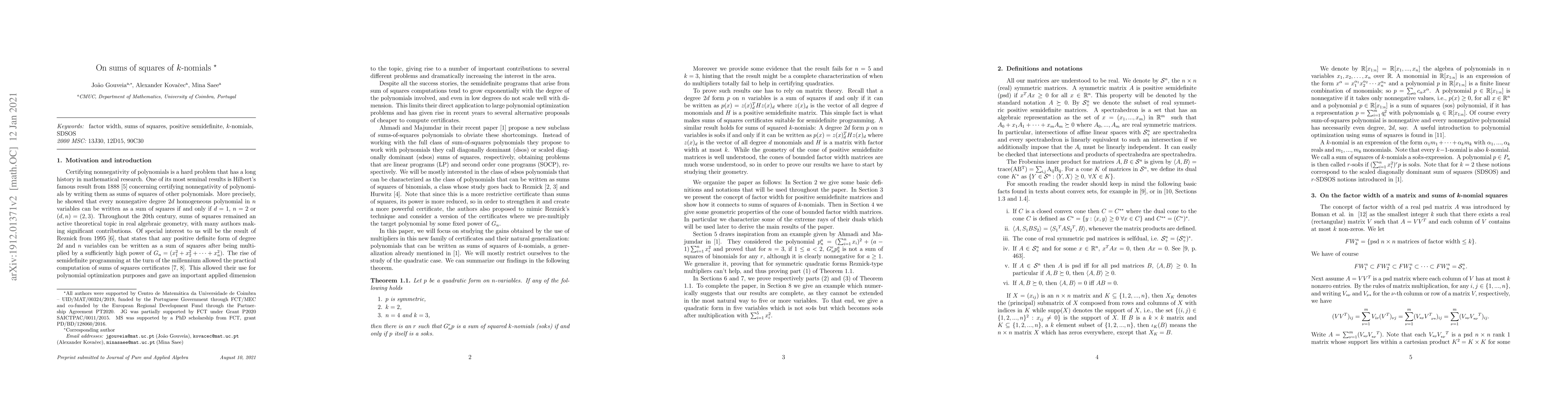 In 2005, Boman et al introduced the concept of factor width for a real symmetric positive semidefinite matrix. This is the smallest positive integer $k$ for which the matrix $A$ can be written as $A=VV^T$ with each column of $V$ containing at most $k$ non-zeros. The cones of matrices of bounded factor width give a hierarchy of inner approximations to the PSD cone. In the polynomial optimization context, a Gram matrix of a polynomial having factor width $k$ corresponds to the polynomial being a sum of squares of polynomials of support at most $k$. Recently, Ahmadi and Majumdar, explored this connection for case $k=2$ and proposed to relax the reliance on sum of squares polynomials in semidefinite programming to sum of binomial squares polynomials (sobs; which they call sdsos), for which semidefinite programming can be reduced to second order programming to gain scalability at the cost of some tolerable loss of precision. With this they tap into the study of sobs that goes back to Reznick and Hurwitz. In this paper, we will prove some results on the geometry of the cones of matrices with bounded factor widths and their duals, and use them to derive new results on the limitations of certificates of nonnegativity of quadratic forms by sums of $k$-nomial squares using standard multipliers. In particular we will show that they never help for symmetric quadratics, for any quadratic if $k=2$, and any quaternary quadratic if $k=3$. Furthermore we give some evidence that those are a complete list of such cases.
