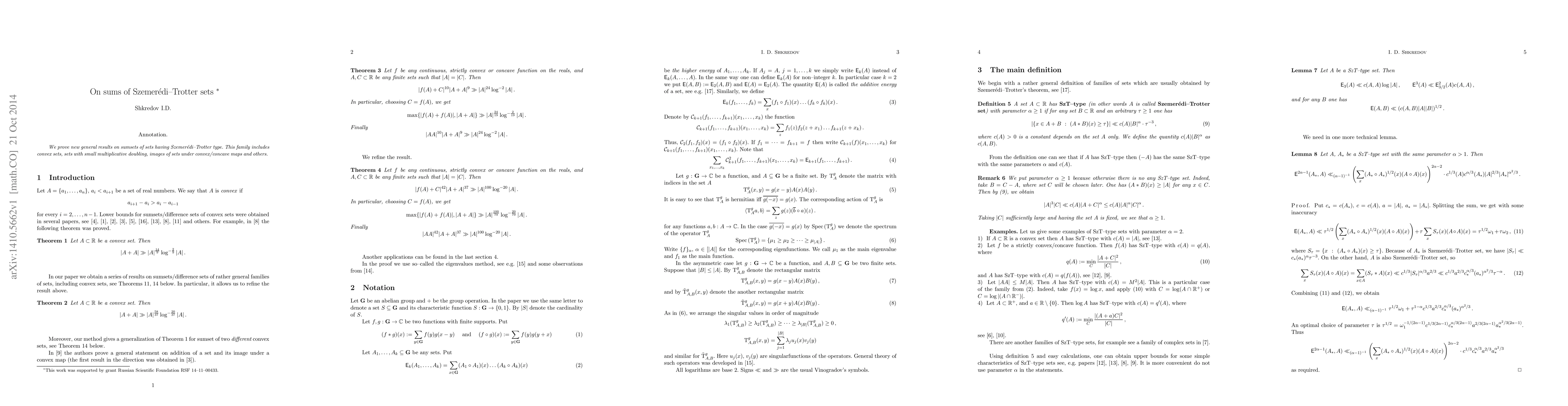 Summary: This paper establishes new general results concerning the sumsets of sets characterized by Szemer\'edi--Trotter type, including convex sets, sets with limited multiplicative doubling, and images of sets under convex/concave maps. The findings provide deeper insights into the structure of these sets.