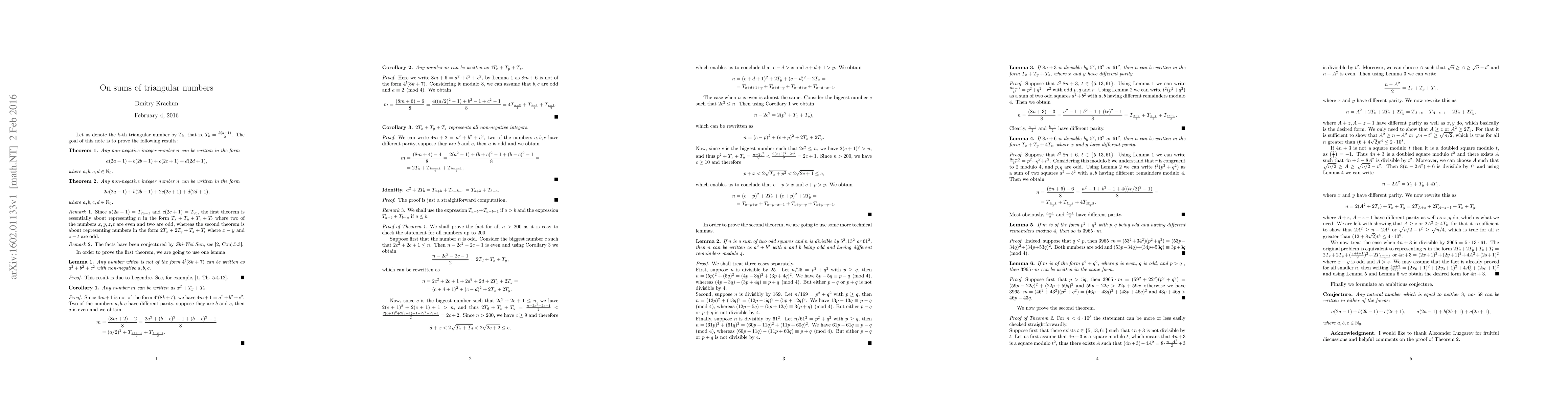 We study decompositions of natural numbers into triangular summands. For instance, we prove that any natural number can be represented as a sum of four triangular numbers, two of them having even indices and the other two having odd indices. This settles a conjecture by Zhi-Wei Sun (arXiv:1503.03743v8).