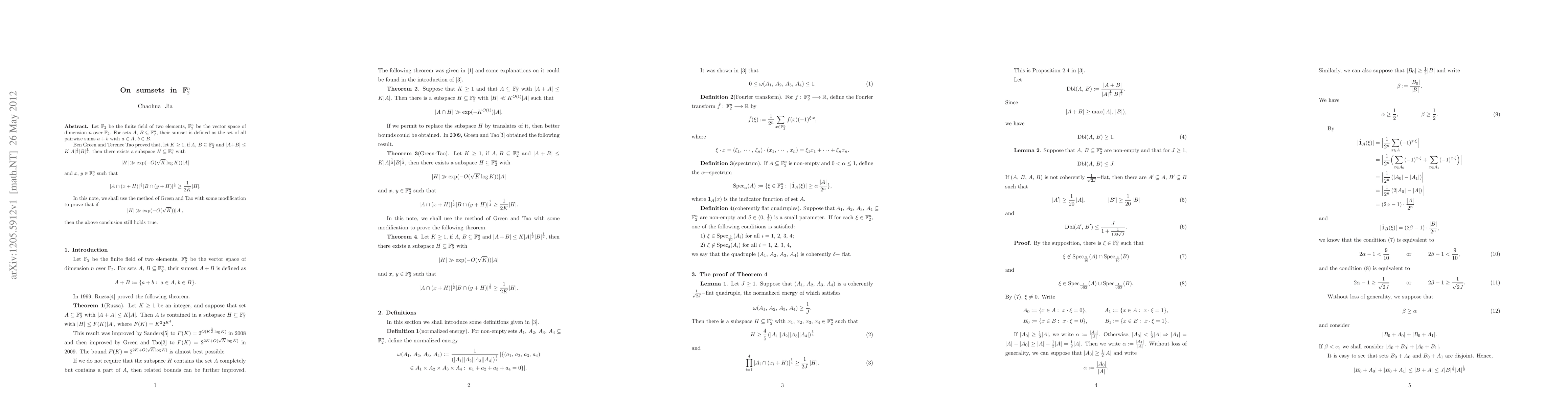 Let ${\Bbb F}_2$ be the finite field of two elements, ${\Bbb F}_2^n$ be the vector space of dimension $n$ over ${\Bbb F}_2$. For sets $A,\,B\subseteq{\Bbb F}_2^n$, their sumset is defined as the set of all pairwise sums $a+b$ with $a\in A,\,b\in B$. Ben Green and Terence Tao proved that, let $K\geq 1$, if$A,\,B\subseteq{\Bbb F}_2^n$ and $|A+B|\leq K|A|^{1\over 2}|B|^{1\over 2}$, then there exists a subspace $H\subseteq{\Bbb F}_2^n$ with $$ |H|\gg\exp(-O(\sqrt{K}\log K))|A| $$ and $x,\,y\in{\Bbb F}_2^n$ such that $$ |A\cap(x+H)|^{1\over 2}|B\cap(y+H)|^{1\over 2}\geq{1\over 2K}|H|. $$ In this note, we shall use the method of Green and Tao with some modification to prove that if $$ |H|\gg\exp(-O(\sqrt{K}))|A|, $$ then the above conclusion still holds true.